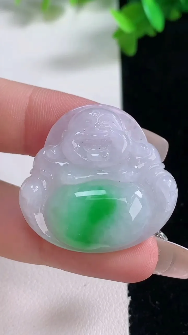 18K金镶嵌冰种飘花翡翠招财福瓜吊坠,精美饱满福瓜,种水足,形态圆润饱满,福相十足 !#1.30