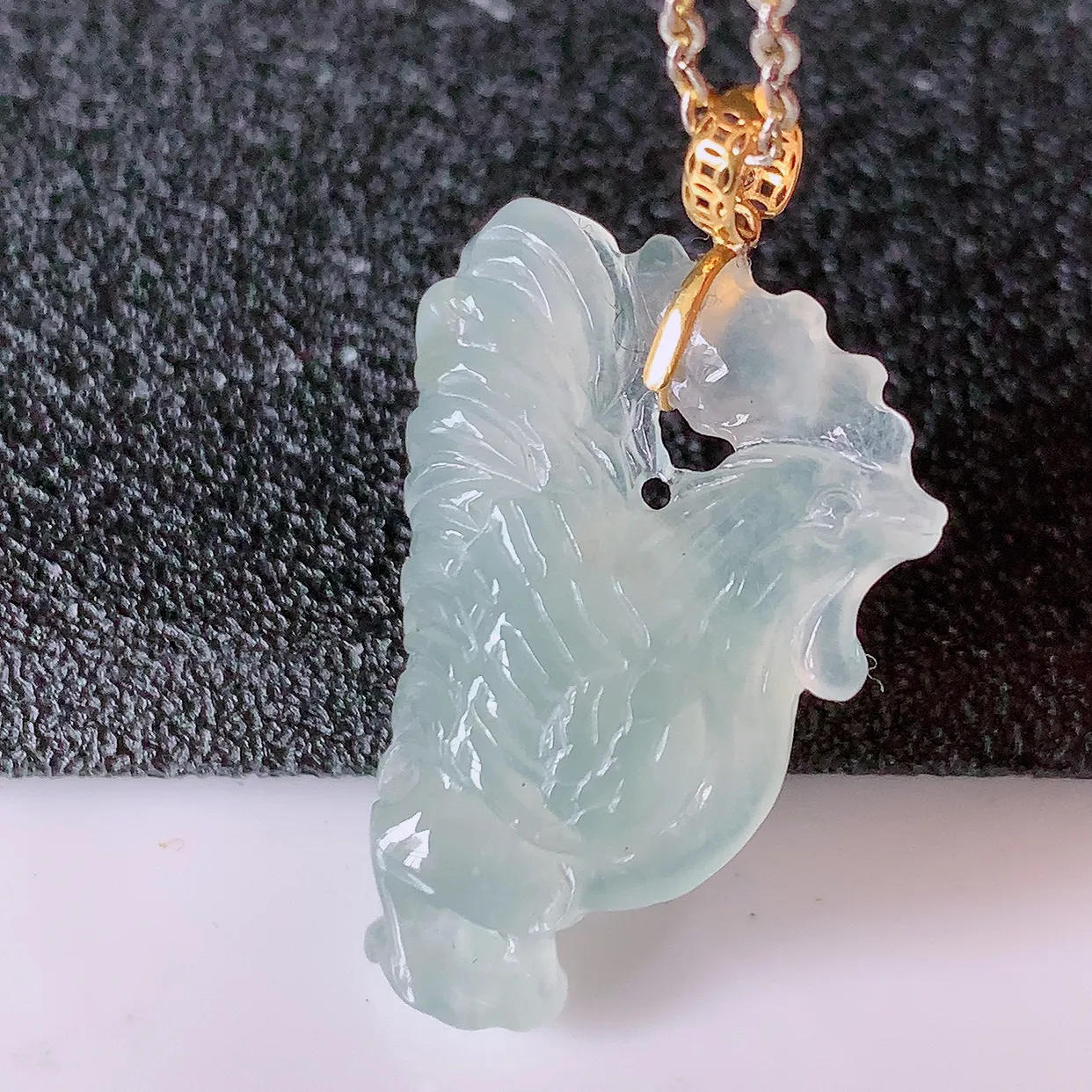 18K金镶嵌冰种翡翠生肖鸡吊坠,种老水足,雕工精湛 ,寓意美好, 佩戴时尚出众!#1.30
