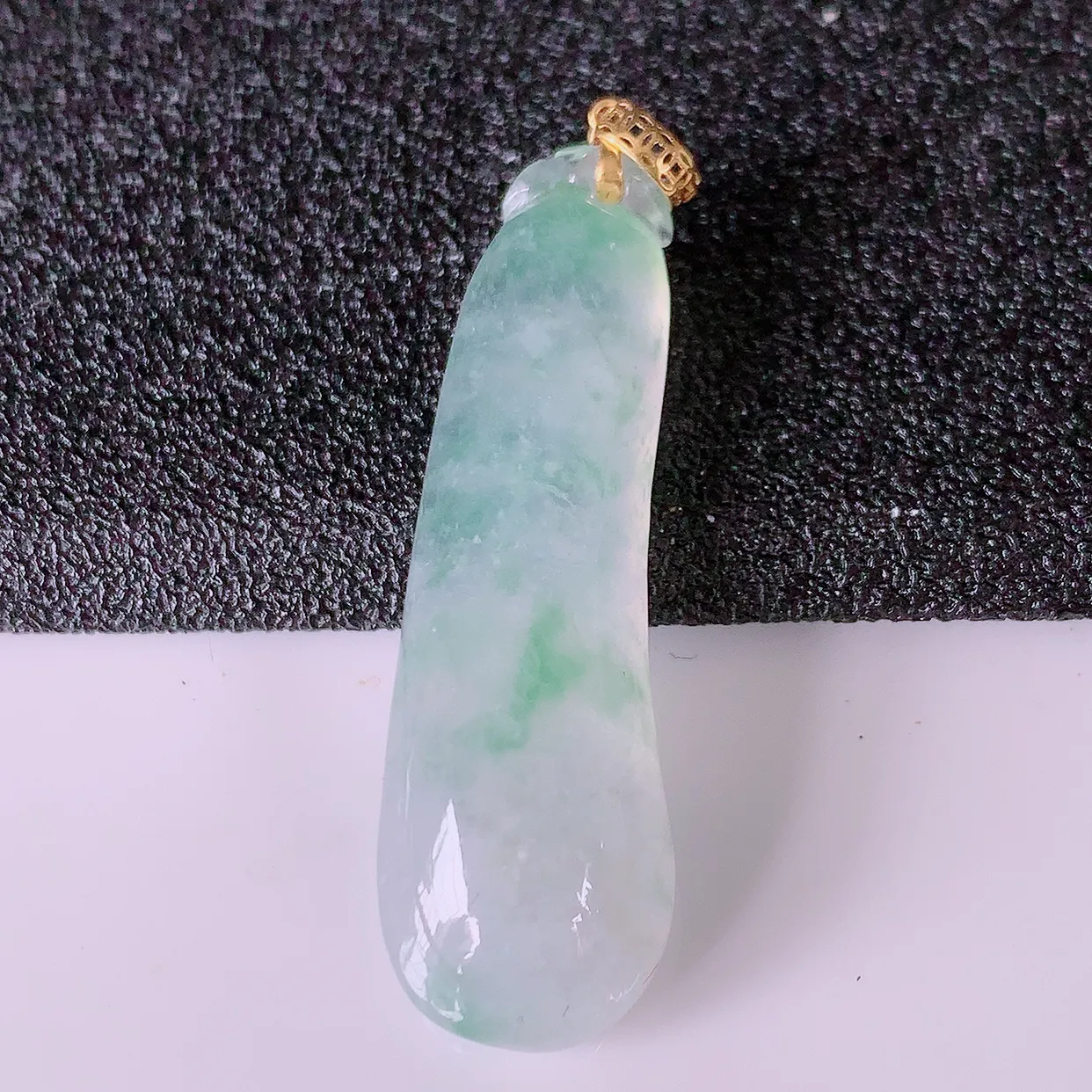 18K金镶嵌飘绿翡翠如意吊坠,简单的镶嵌设计、让玉坠百搭又精致,寓意着吉祥, 事事如意!#1.30