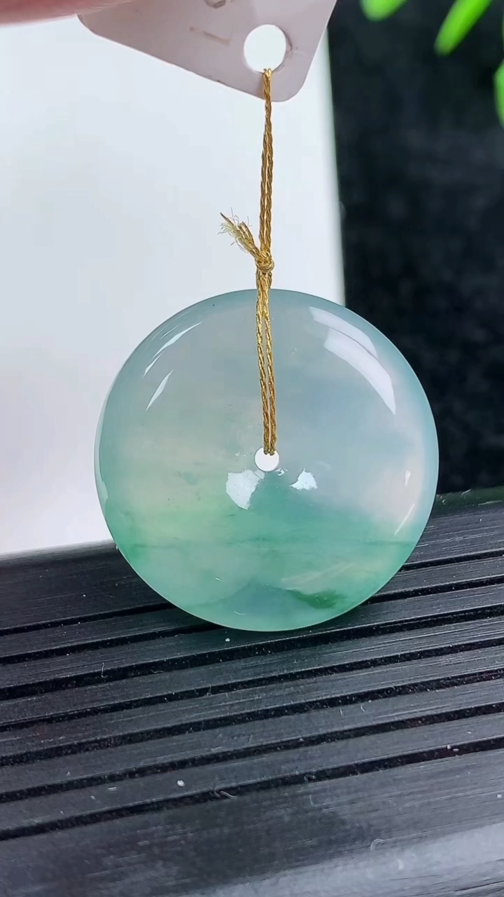 天然A货翡翠冰种飘花平安扣吊坠尺寸23.3-5.6重量:6.56g 3月14日