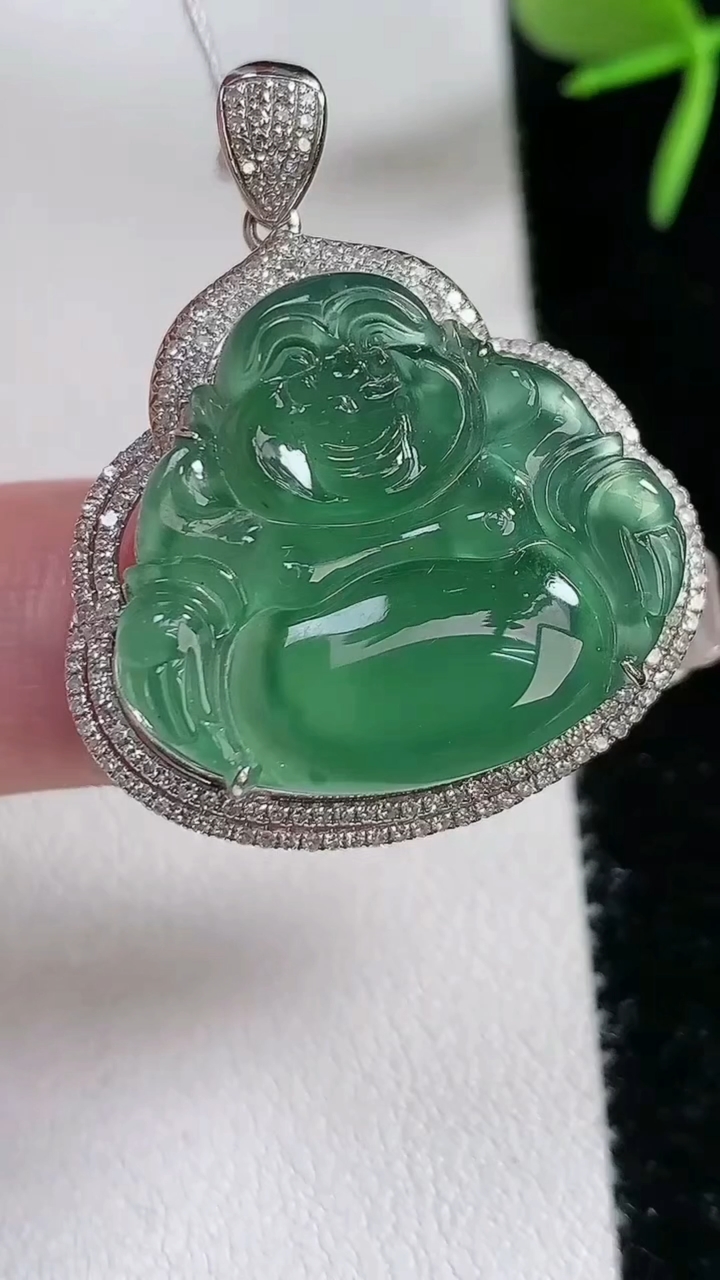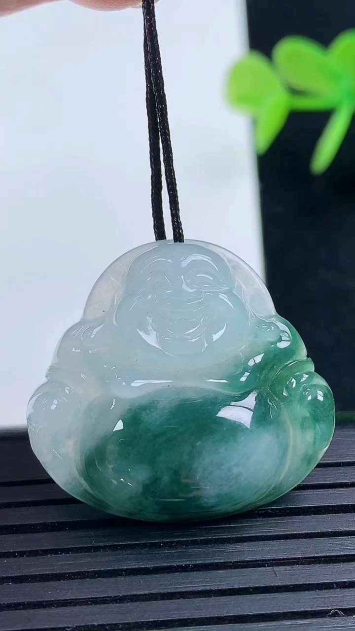 天然A货翡翠飘花佛公吊坠尺寸25.6-27.8-5.8重量:6.77g 3月17日