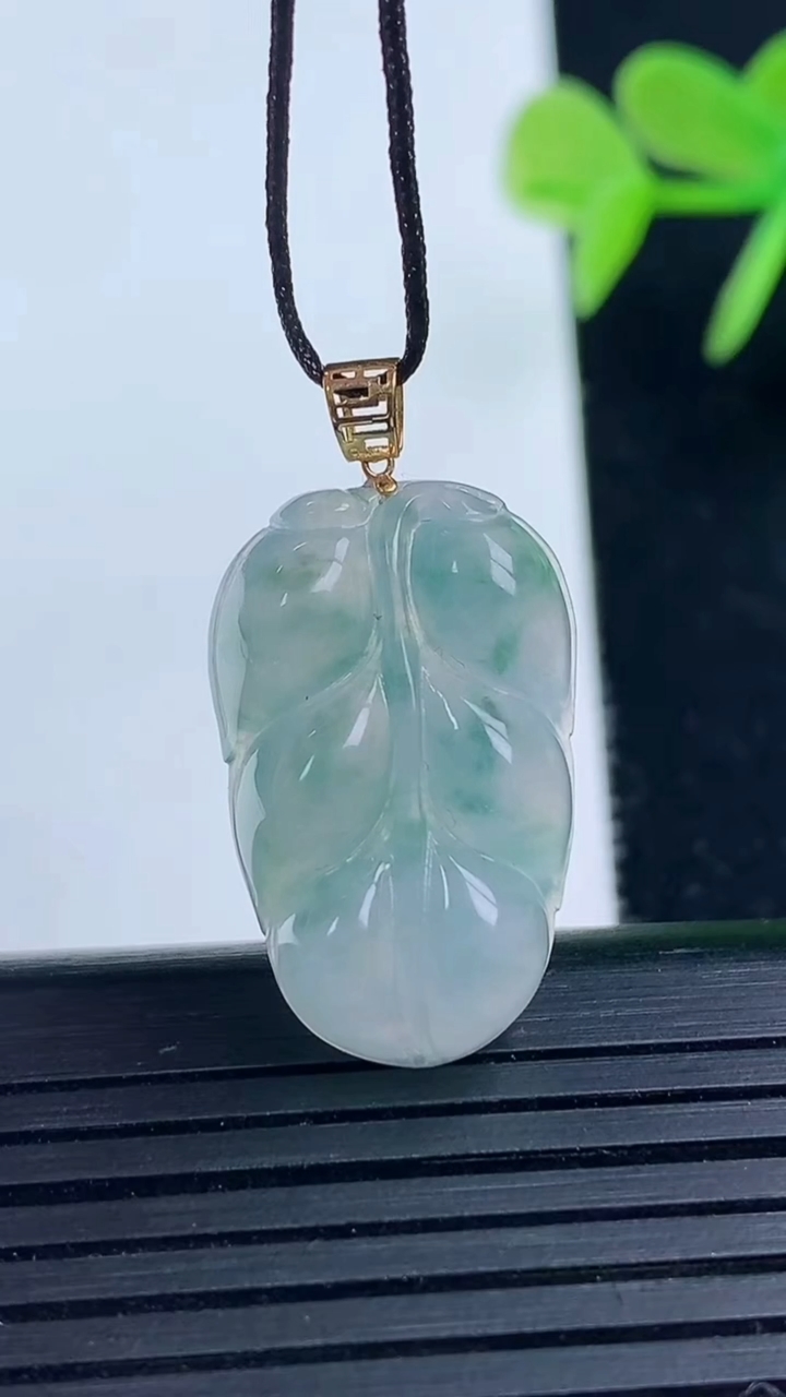 天然A货翡翠18K金飘花金枝玉叶 叶子吊坠尺寸23.6-14.7-5重量:3.47g 3月17日