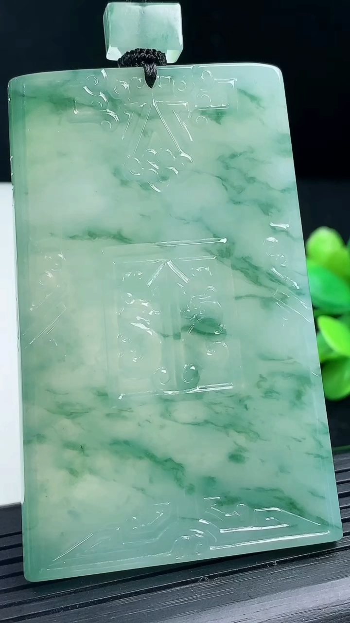 天然A货翡翠种飘花仿古无事牌吊坠尺寸69.6-45.7-5.6重量:57.00g 3月17日