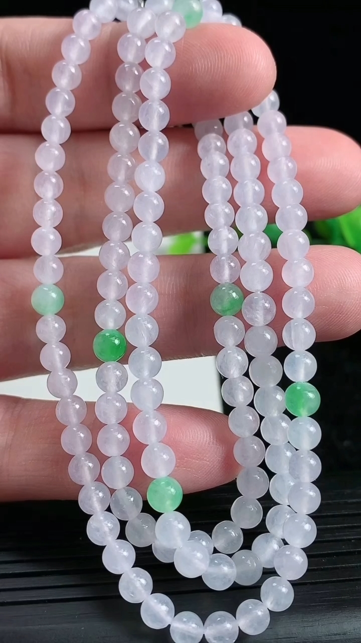 天然A货翡翠圆珠项链尺寸4.4-130颗重量:24.35g 3月23日