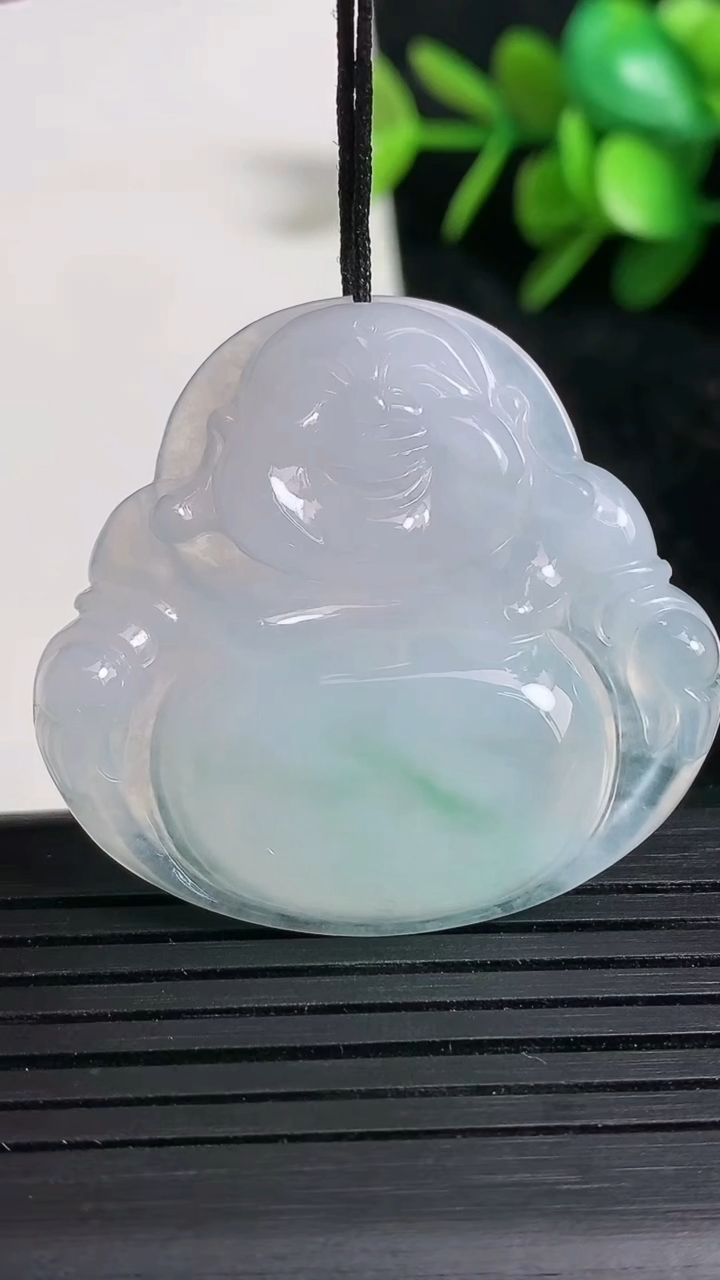 天然A货翡翠冰种飘花佛公吊坠尺寸35.9-39-5.9重量:12.95g 3月23日
