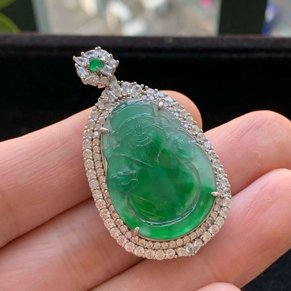 冰润佛公挂件 玉质细腻 精雕弥勒佛,笑佛福耳垂肩,面相喜庆,开怀大笑,憨态可掬。惟妙惟肖,寓意福禄