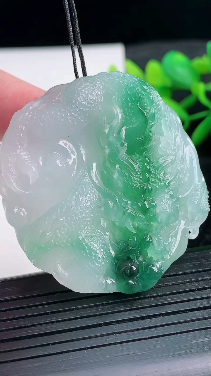 天然A货翡翠龙牌吊坠尺寸48.8-45.7-12重量:46.85g 3月25日