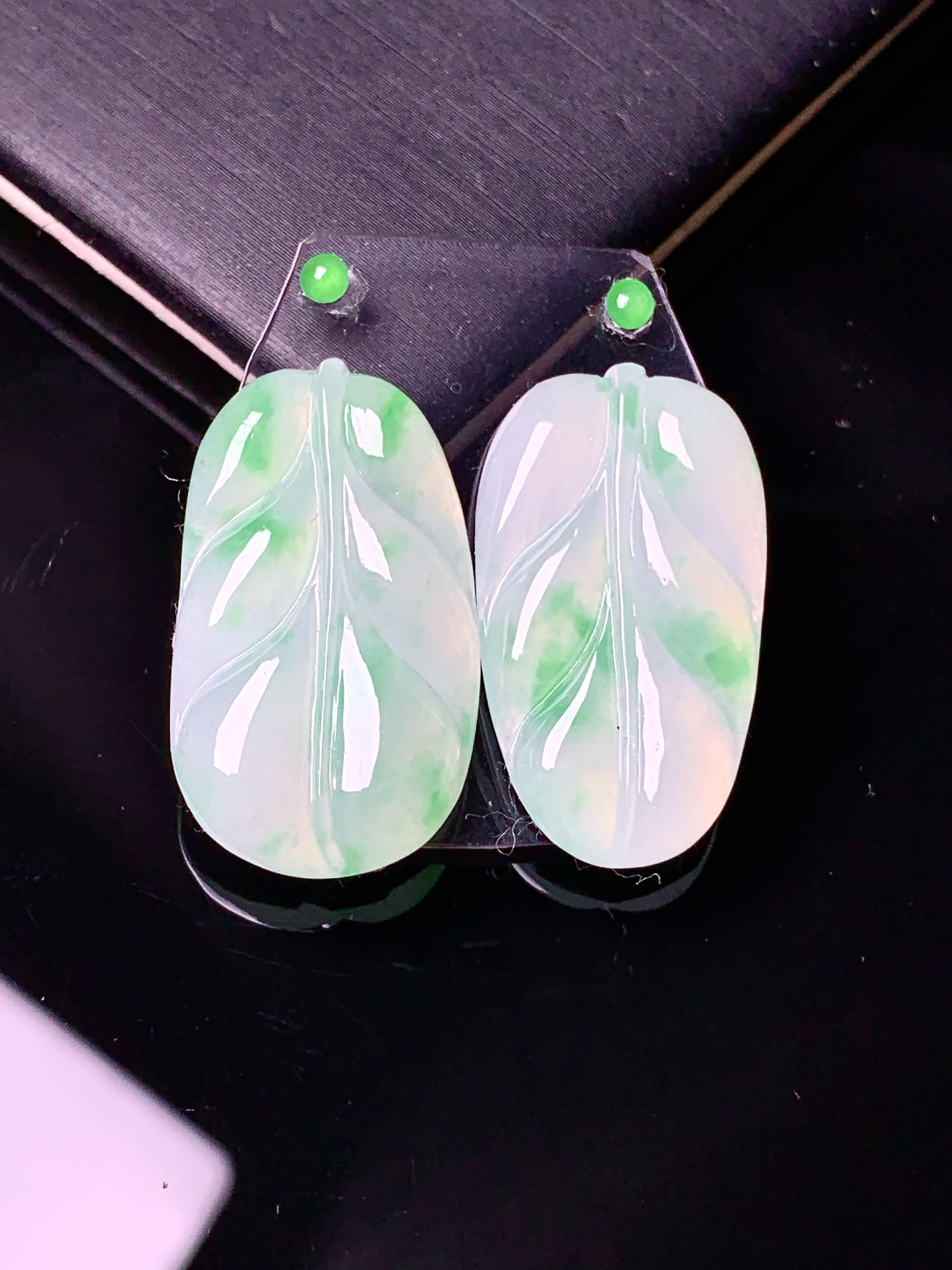 镶嵌款 飘绿树叶吊坠 玉质细腻 色泽艳丽 整体尺寸24.5*13.5*3.5*2x