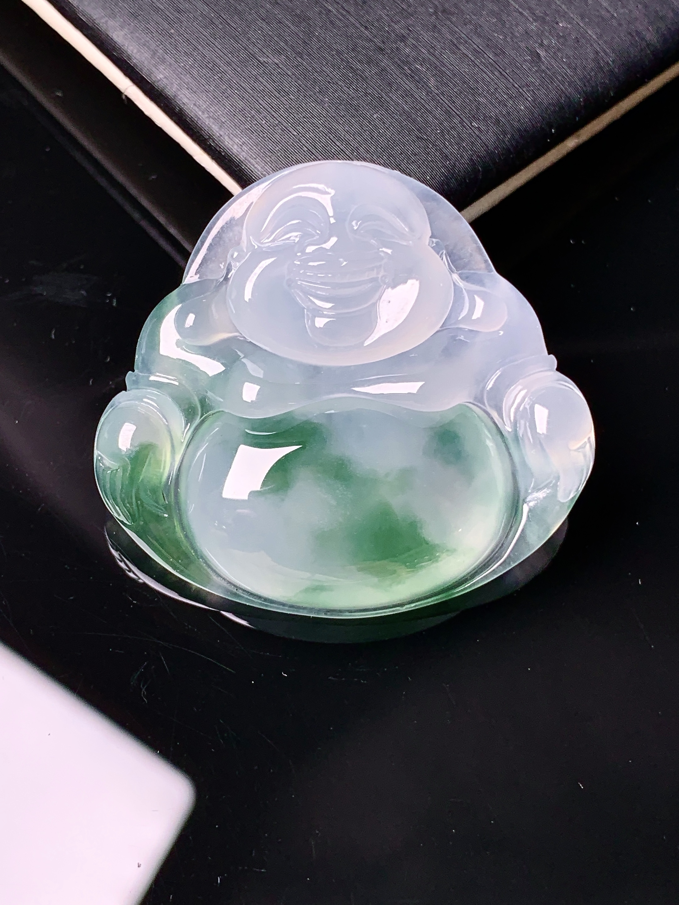 飘绿佛公吊坠 玉质细腻 色泽艳丽 整体尺寸30.9*33.8*5.6d1