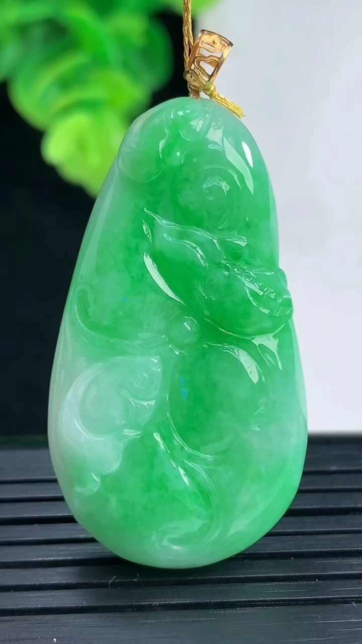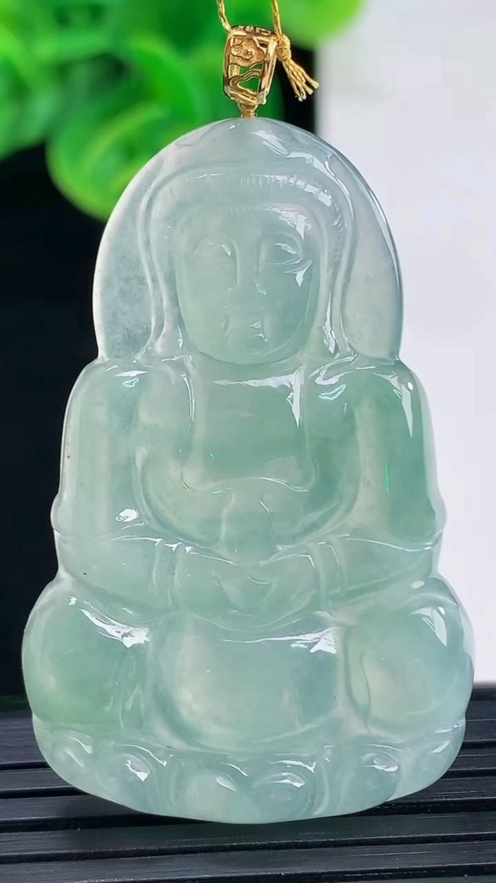 A货天然翡翠冰糯种满绿观音吊坠重量26.40 4月12日