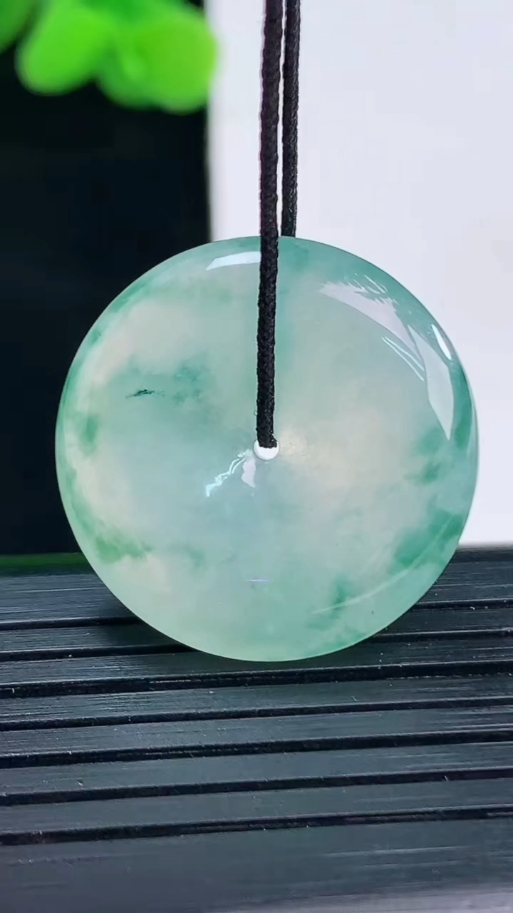 天然A货翡翠冰种飘花平安扣吊坠尺寸24.4-5.6重量:7.01g 4月12日