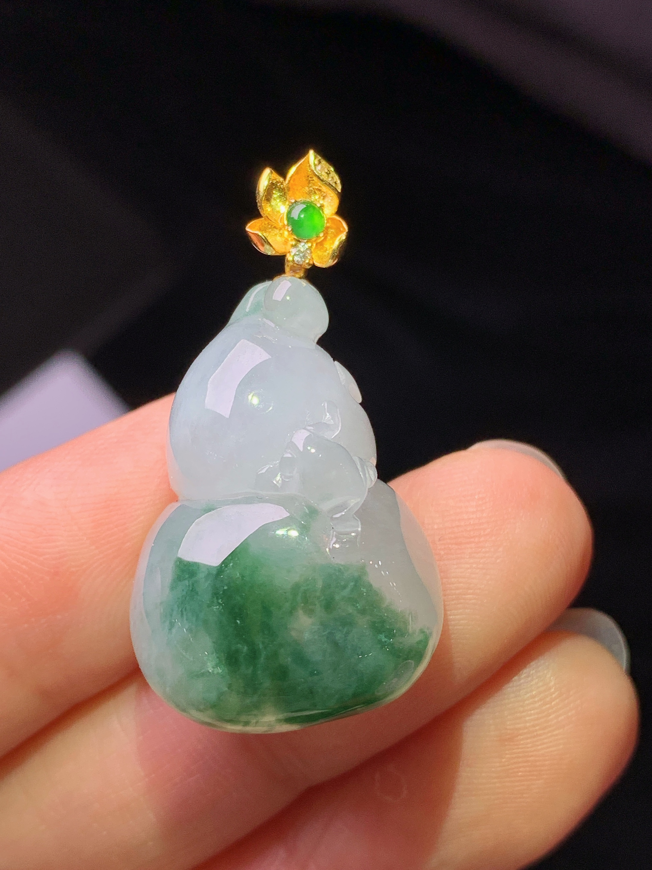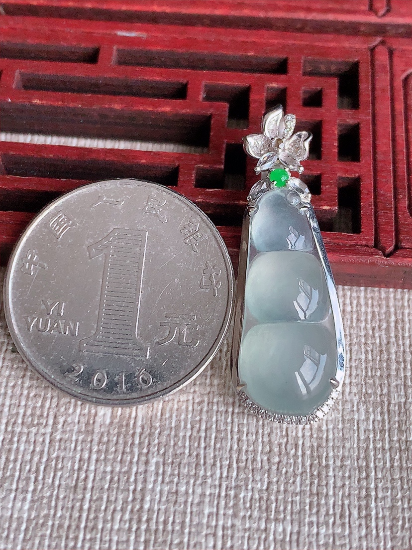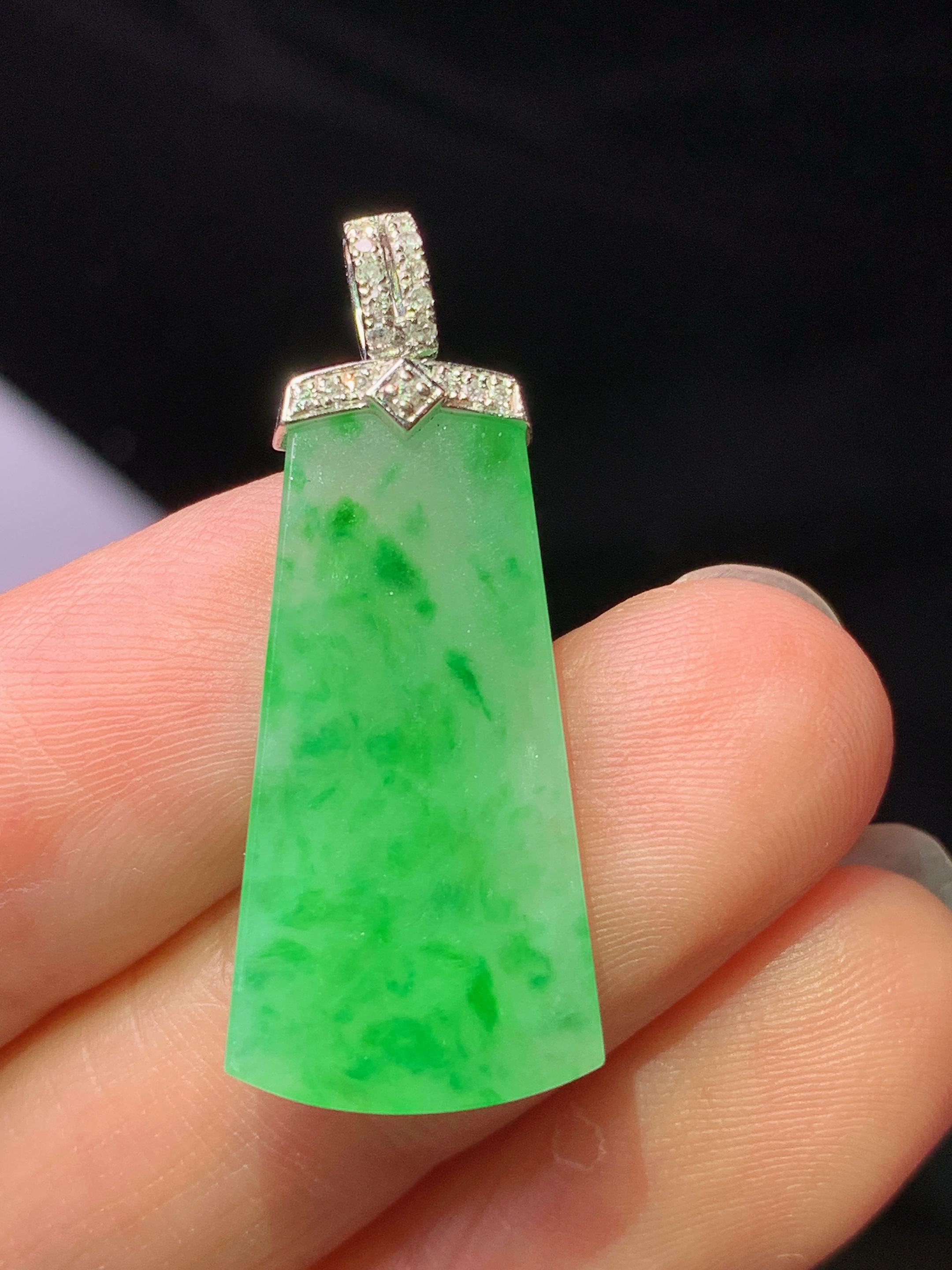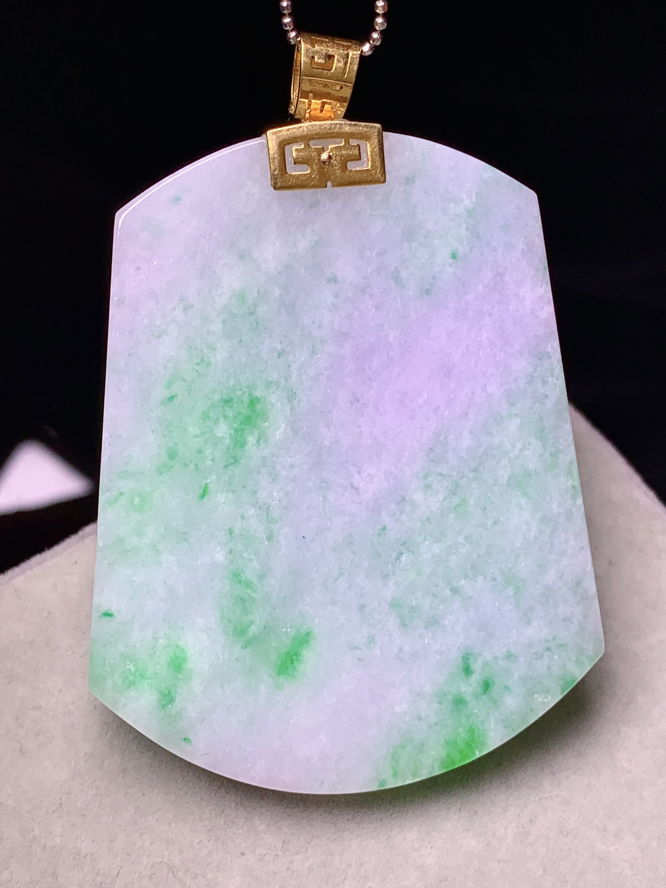 A货天然翡翠冰糯种18k飘绿无事牌吊坠重量2.54 4月19日