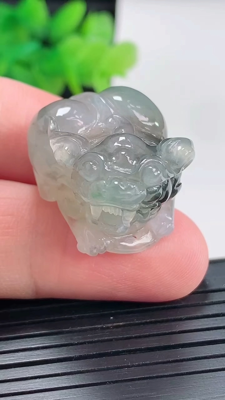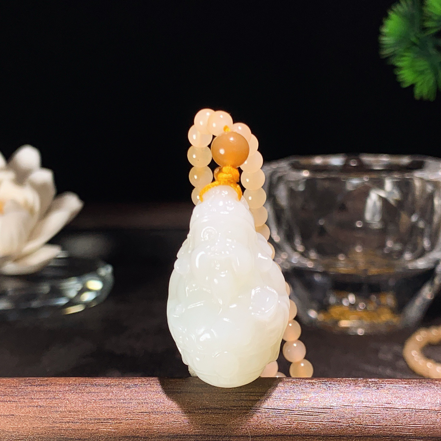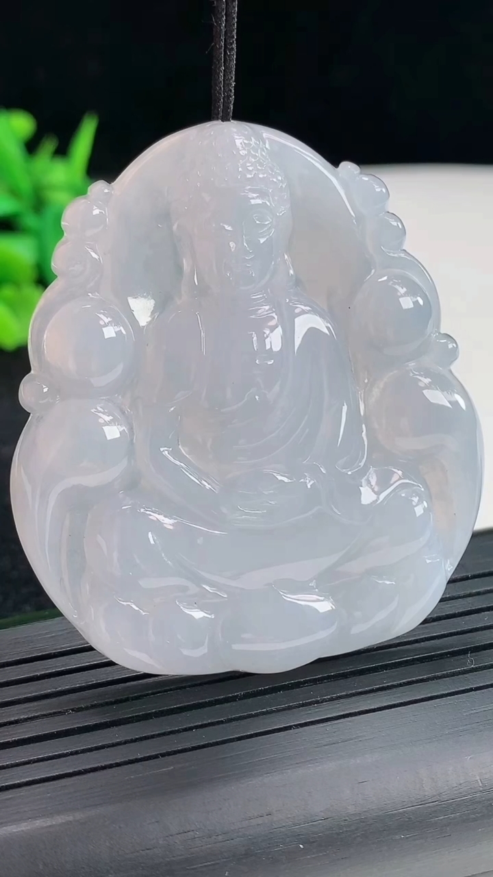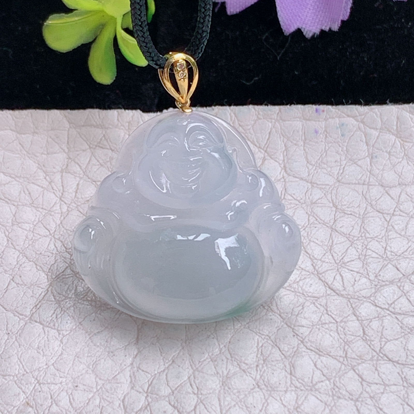 zz3实拍24*25.8*6.2天然缅甸翡翠白冰佛公吊坠金扣精雕弥勒佛