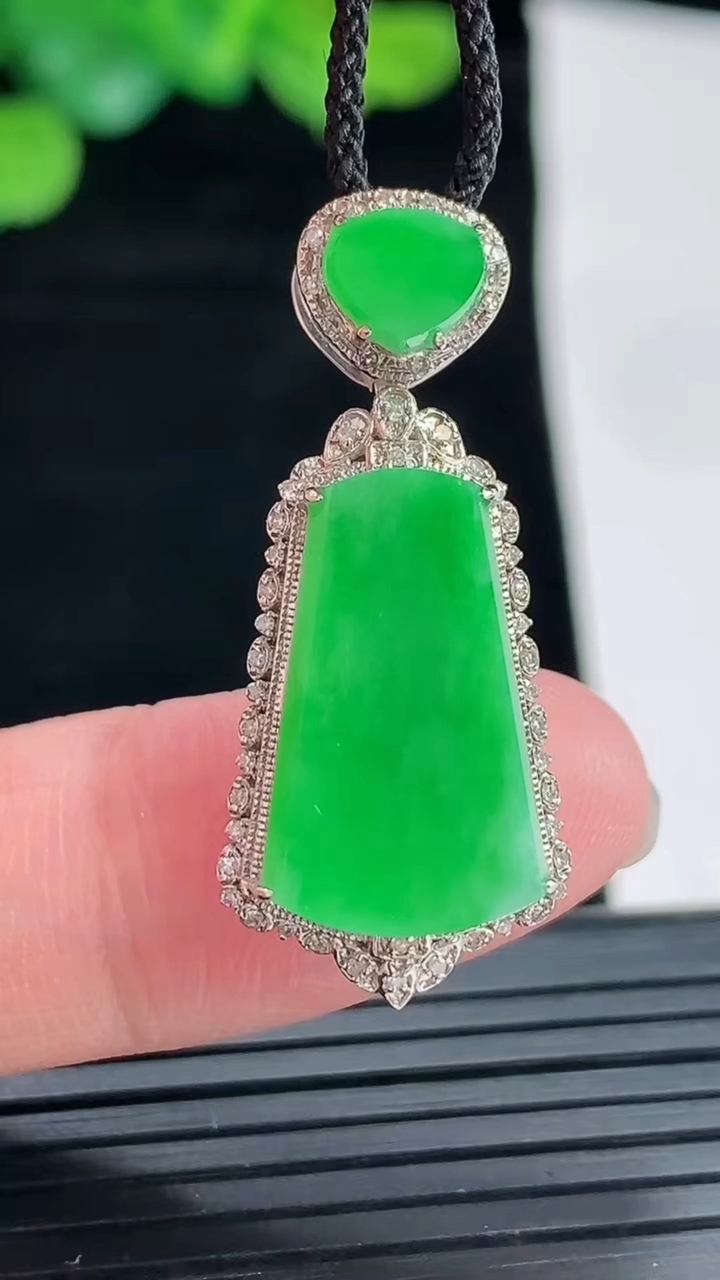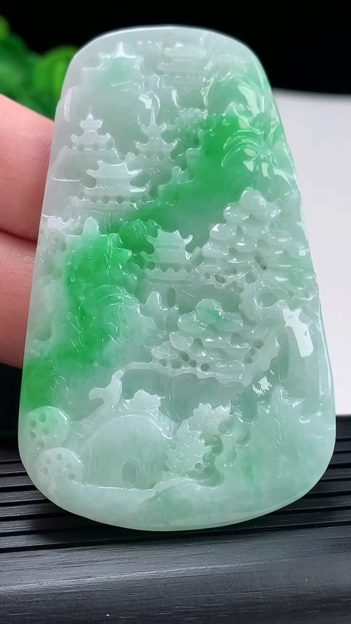 天然A货翡翠无事牌吊坠,尺寸52.6-39-5.5重量:35.56g 4月28日