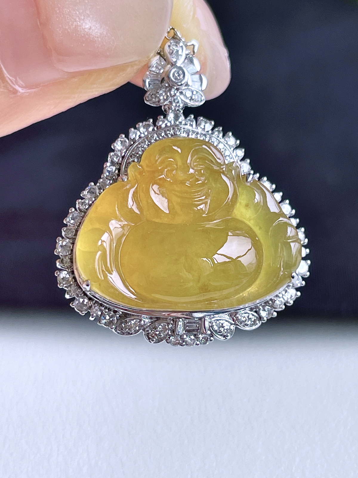 【镶嵌】高冰黄翡佛公吊坠 【说明】缅料 18k金镶嵌 性价比高 【整体】26.8-22-1
