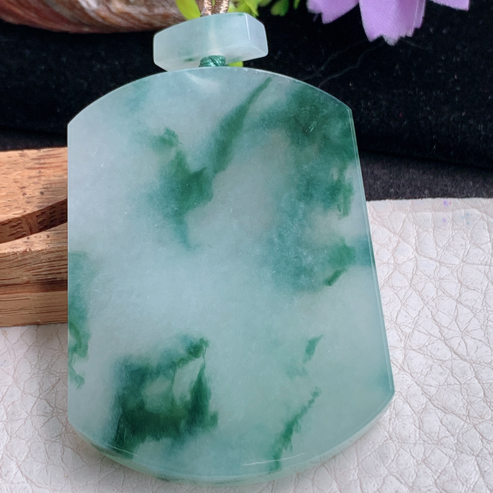 zz3实拍55.3*39.8*6天然缅甸翡翠冰飘花平安无事牌吊坠厚装国风男款项坠