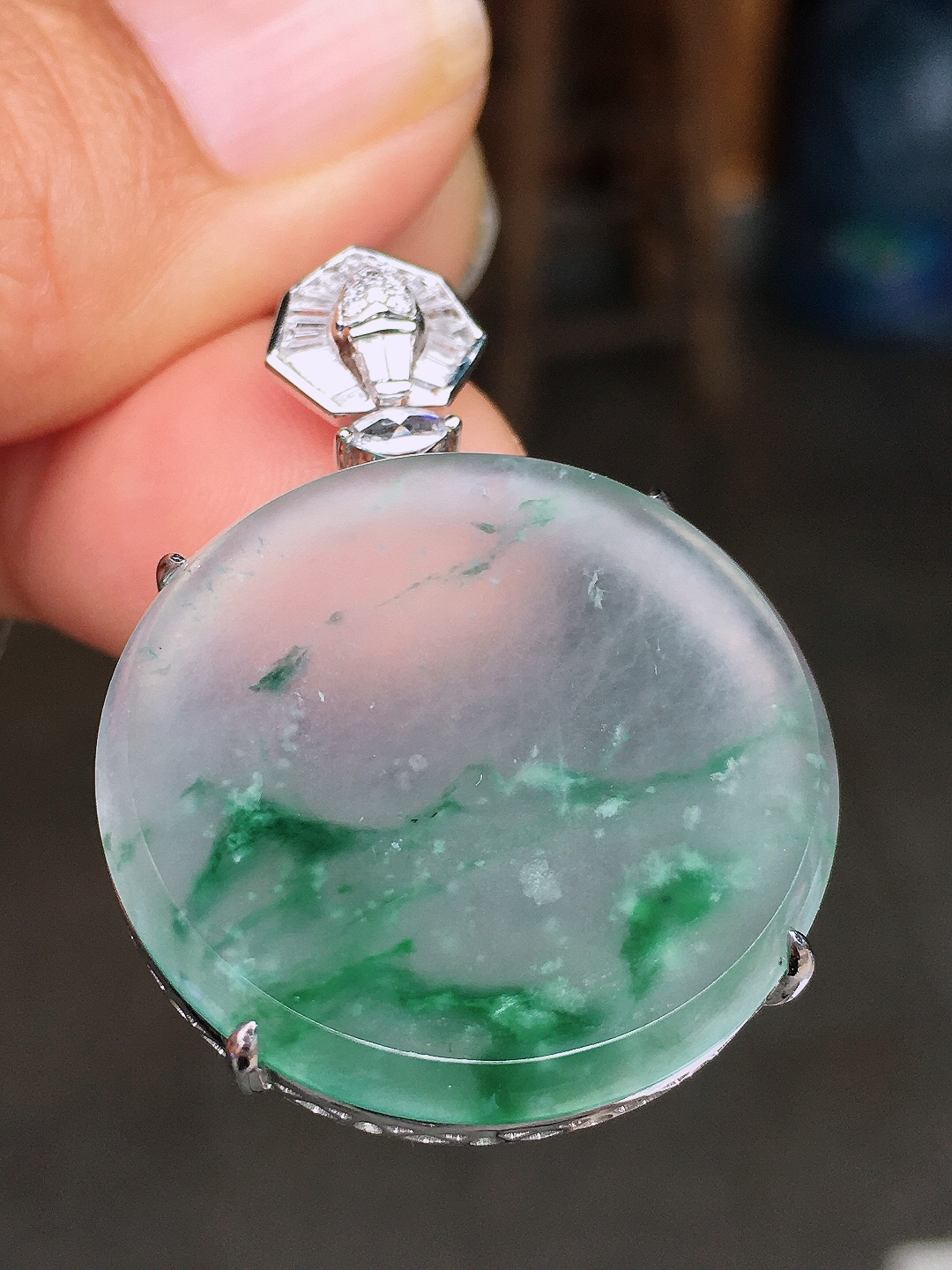 A货天然翡翠冰糯种飘花如意吊坠重量4.47 4月23日