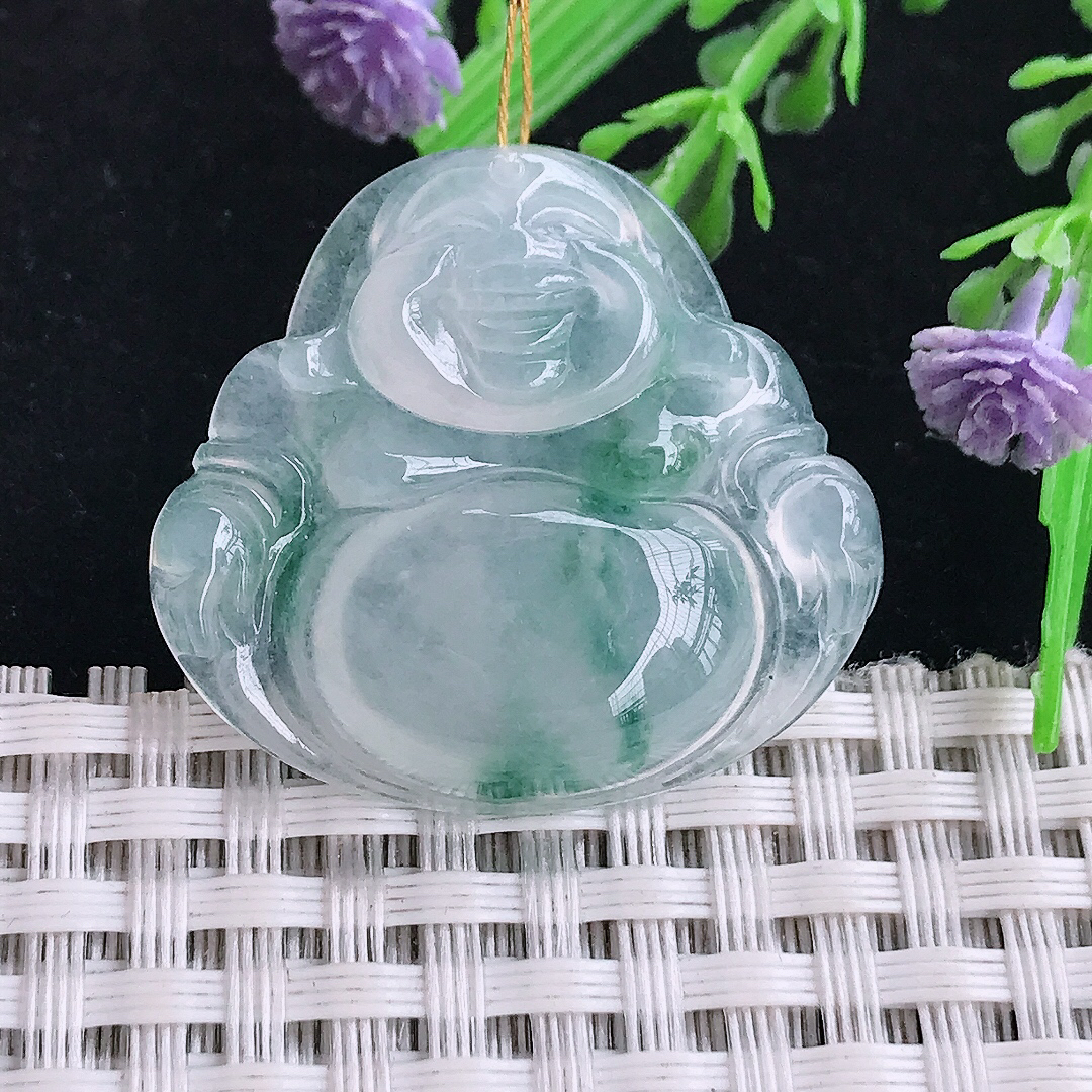 天然A货翡翠种飘花素衣观音吊坠,尺寸53.5-33.5-6重量:21.33g 4月28日