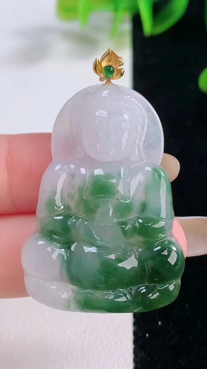 天然A货翡翠观音菩萨吊坠,尺寸41-28.3-3.8,重量:8.43g 11月19日