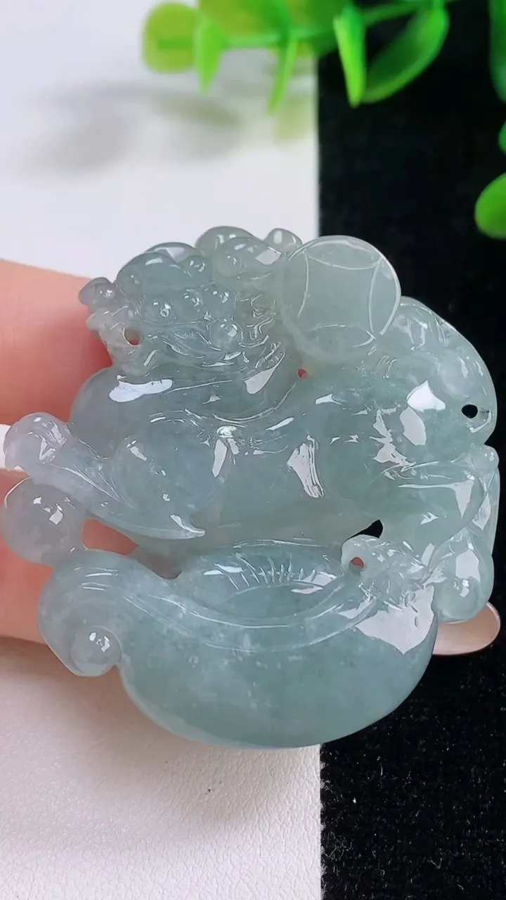 天然A货翡翠麒麟吊坠,尺寸48.8-46.5-11,重量:45.48g 11月19日