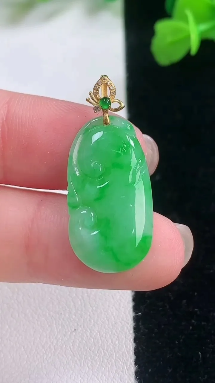 天然A货翡翠无事牌吊…