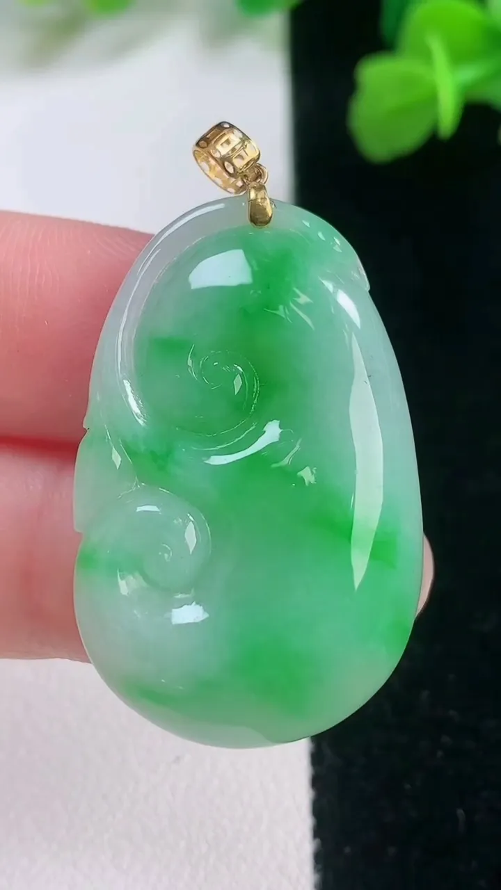 天然A货翡翠如意吊坠,尺寸34.4-21.3-6.2,重量:8.61g 11月28日