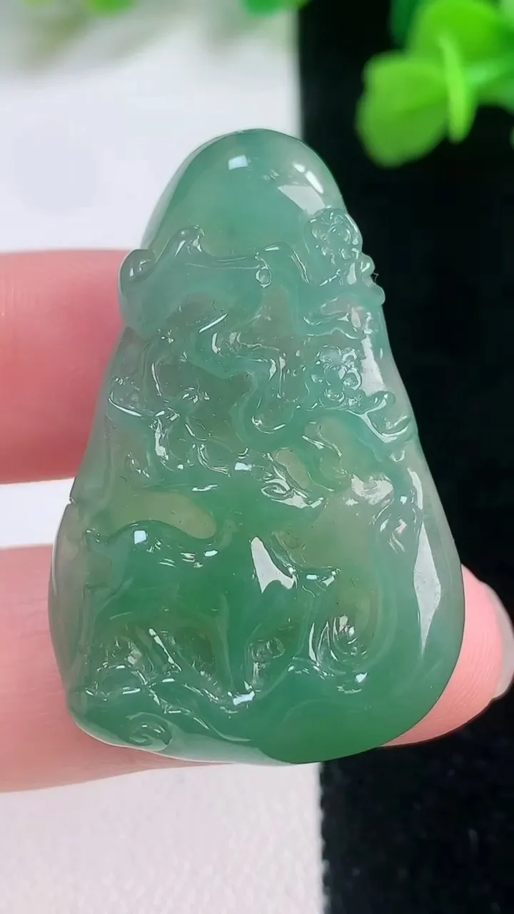 天然A货翡翠梅花鹿吊坠,尺寸38.5-25.2-6.4,重量:11.01g 11月28日