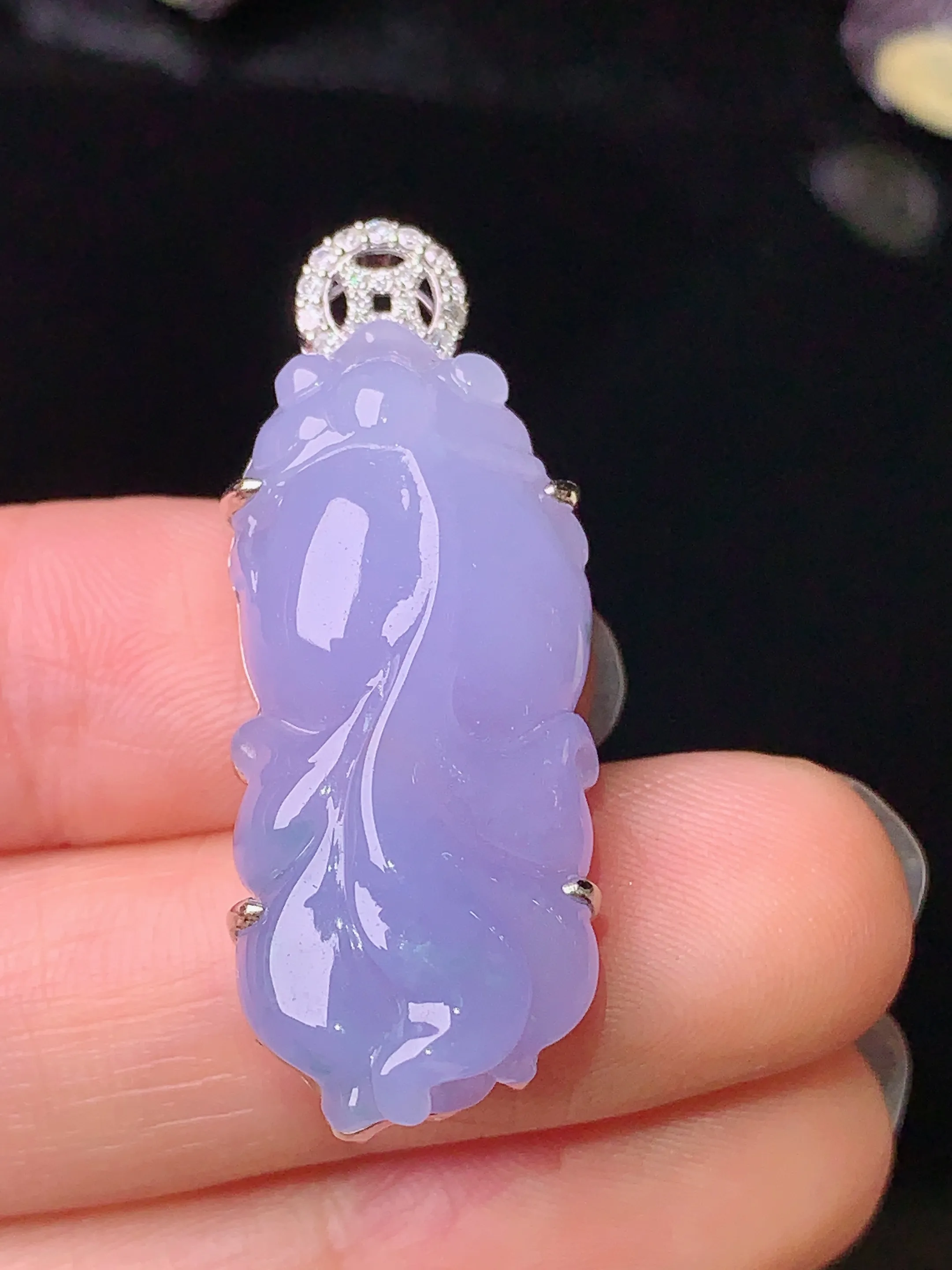 18k金钻镶嵌紫罗兰金鱼吊坠 玉质细腻 色泽艳丽 整体尺寸37.5*14.3*8.5