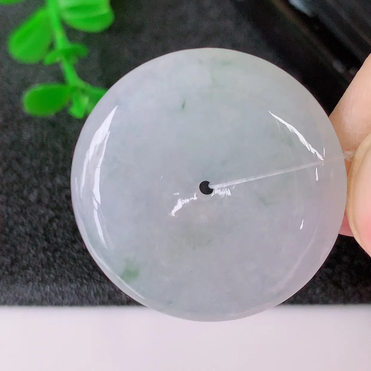 自然光实拍,冰种飘花翡翠平安扣吊坠,翠色灵动,种老水足,寓意好,品相佳,佩戴佳品!#49.17