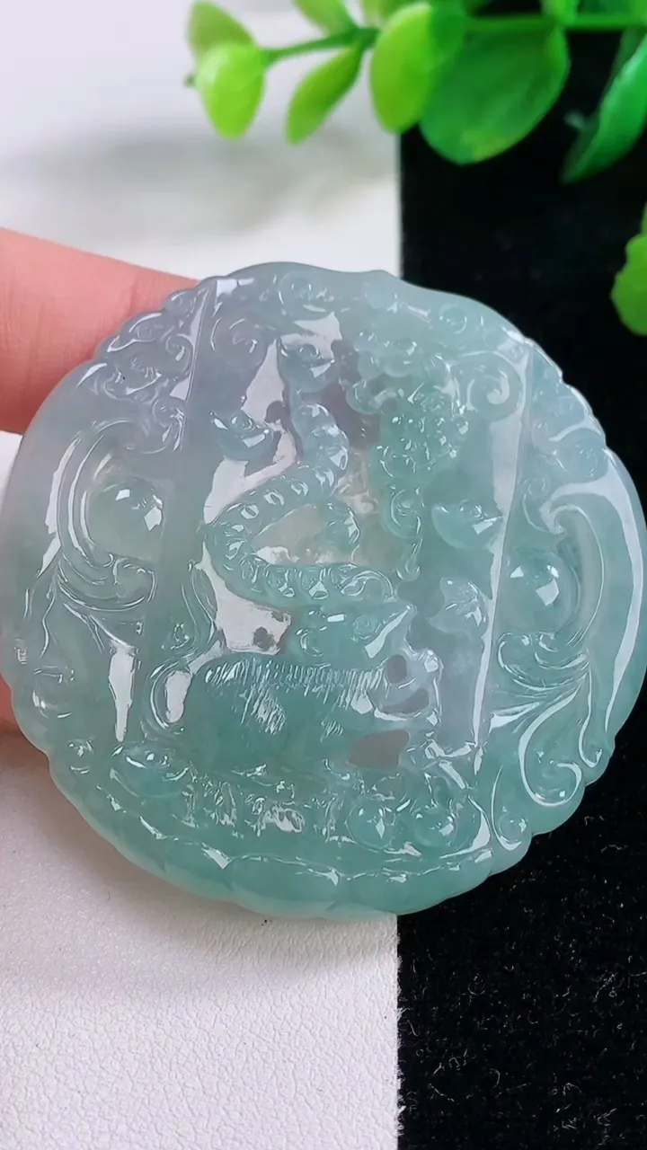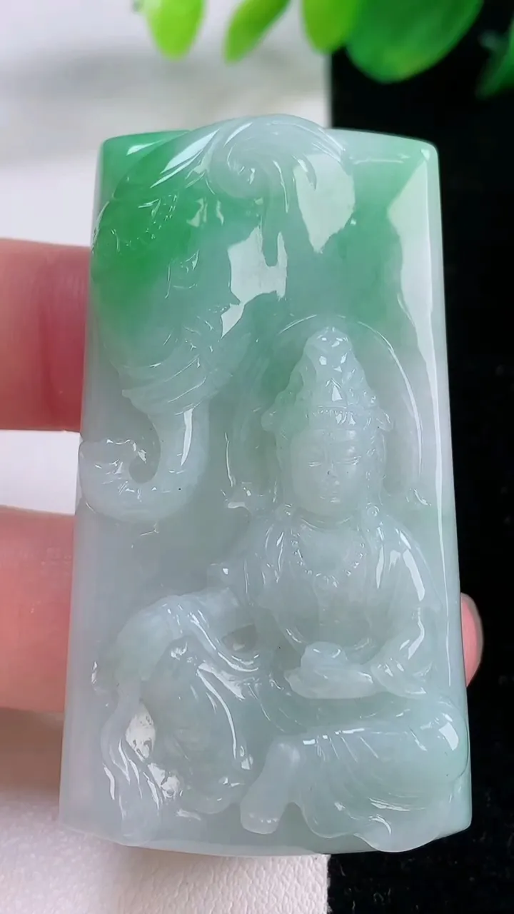天然A货翡翠普贤菩萨吊坠,尺寸56.8-30.3-8.6,重量:34.00g 12月2日