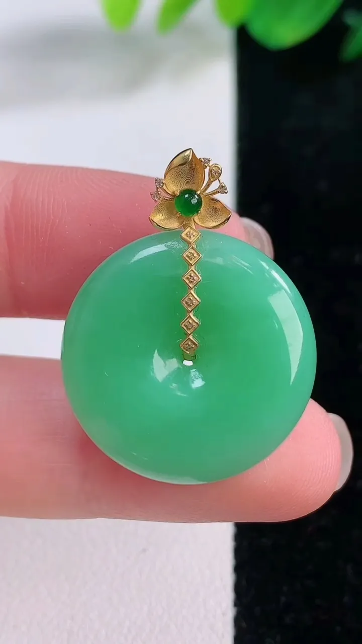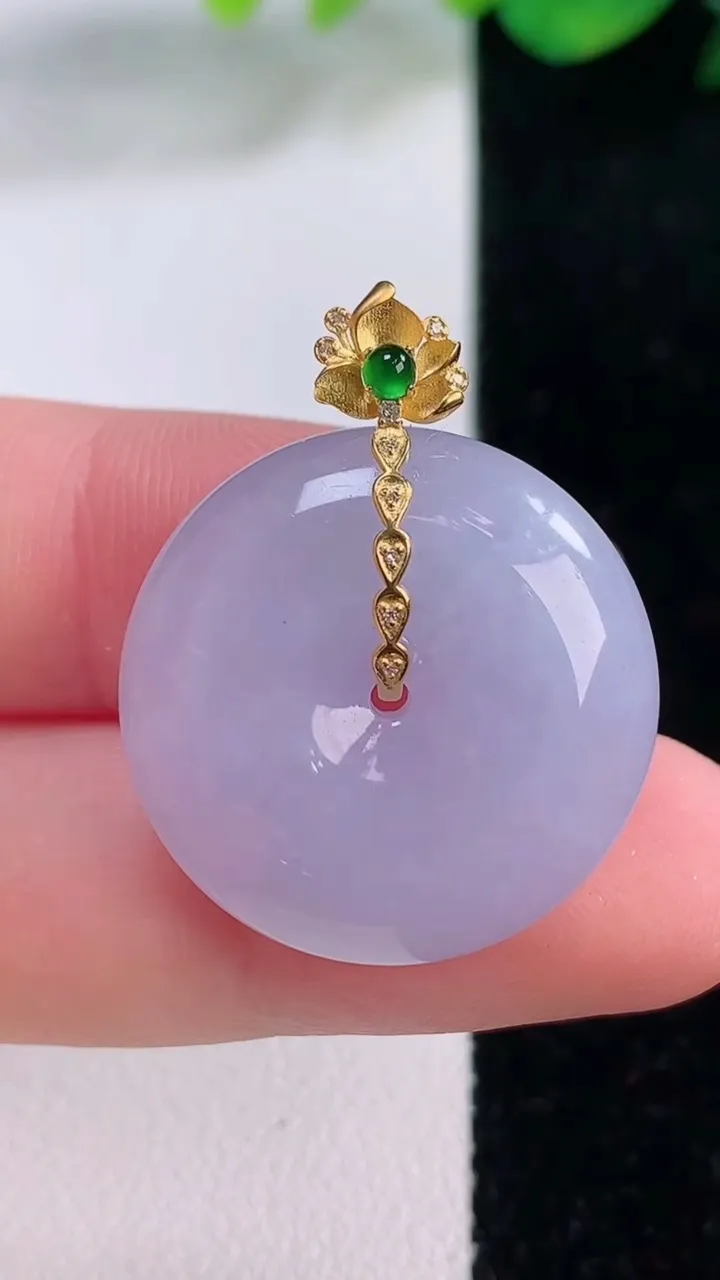 天然A货翡翠18K金紫罗兰平安扣吊坠,尺寸23.6-7.2,重量:9.12g 12月2日