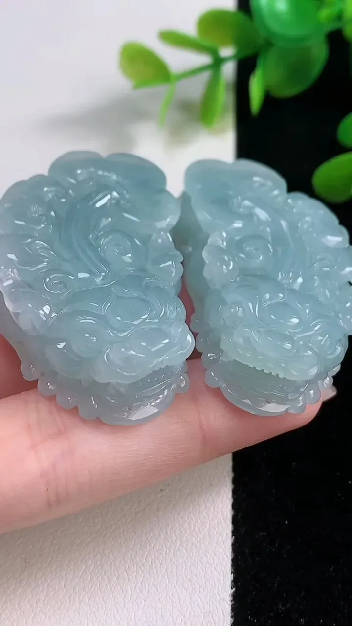 天然A货翡翠紫罗兰貔貅吊坠一对,尺寸45.5-24.6-12,重量:66.78g 12月18日
