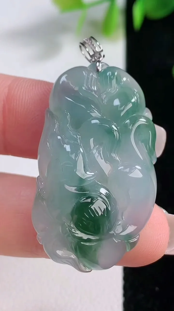 天然A货翡翠种飘花九尾狐吊坠,尺寸36.5-21.5-6.3,重量:9.43g 12月18日