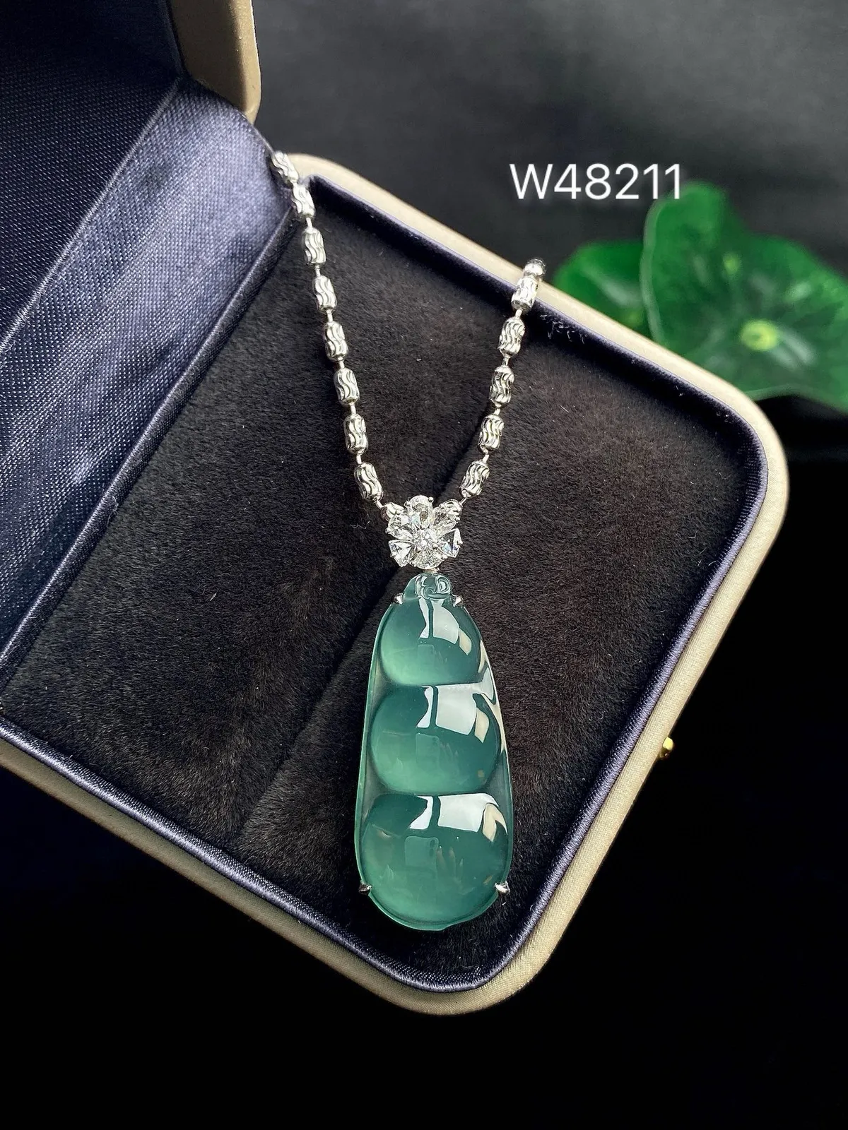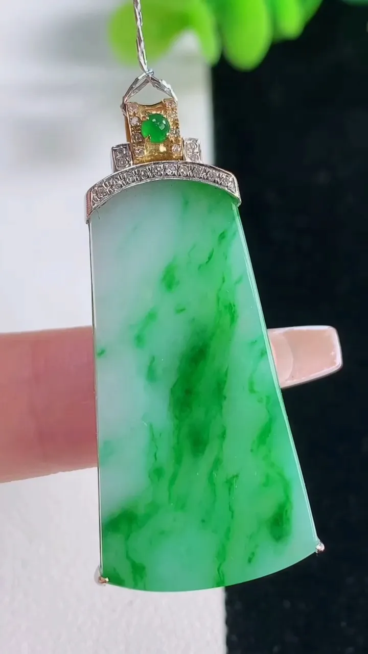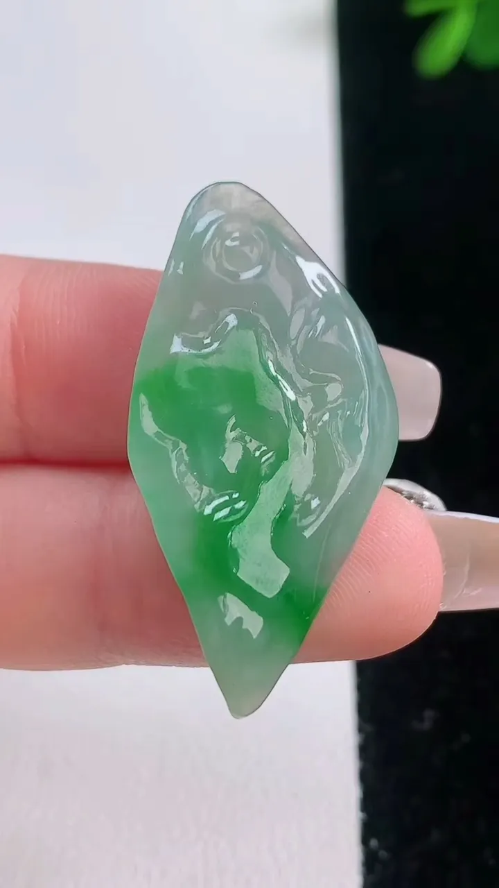 秒杀【超低价放漏】自然光实拍,冰润满绿金枝玉叶吊坠,翡翠叶子,寓意“大业有成,一夜成名,金枝玉叶”辣绿一枚叶坠子,清秀高雅,性价比超值!#64.20配图银扣