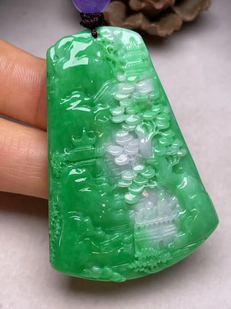 天然A货翡翠如意吊坠,尺寸40.4-29-5,重量:10.47g 12月21日