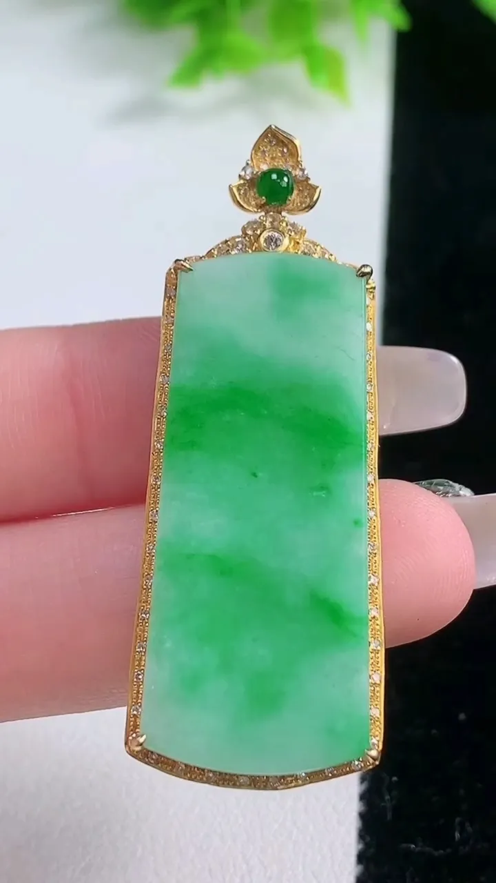 天然A货翡翠无事牌吊坠,尺寸51.5-17.7-6.4,裸石39-17.6重量:7.77g 1月19