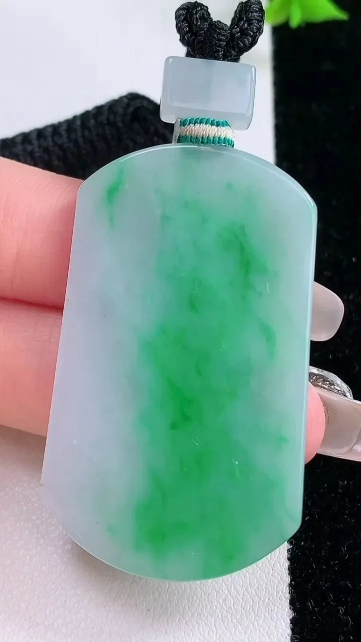 天然A货翡翠无事牌吊坠,尺寸48.3-29-3.6,重量:19.32g 1月27日