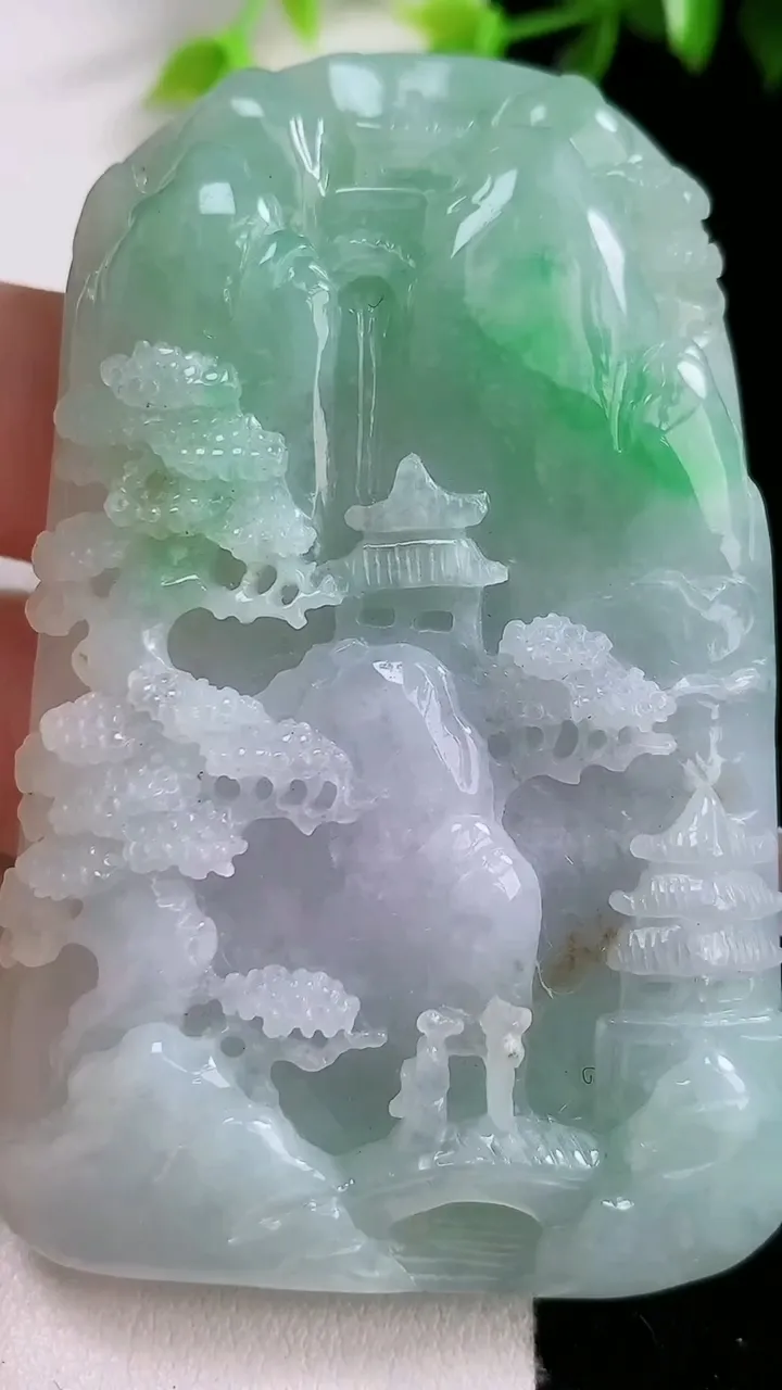 天然A货翡翠山水牌吊坠,尺寸70.7-44.6-13,重:91.23g 1月31日