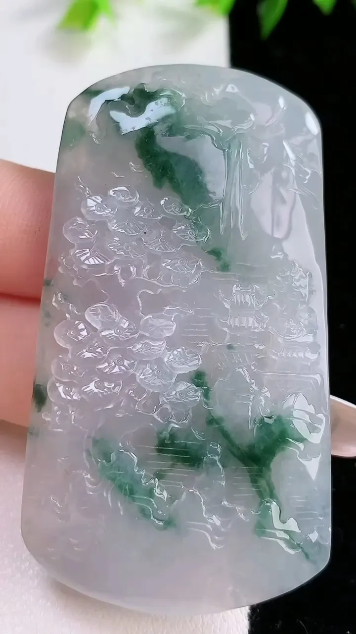 天然A货翡翠飘花山水牌吊坠,尺寸 77.8-49-7,重: 71.03g 1月31日