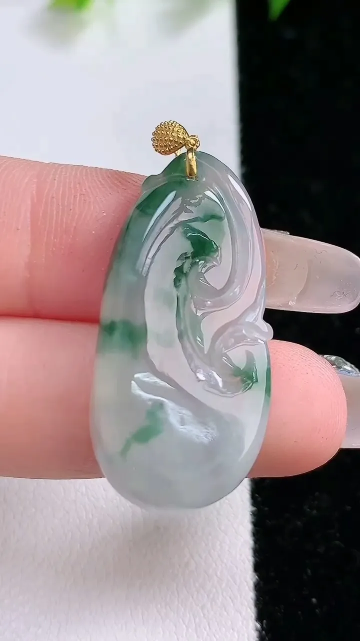 天然A货翡翠种飘花如意吊坠,尺寸33-16-5.2,重:4.77g 1月31日