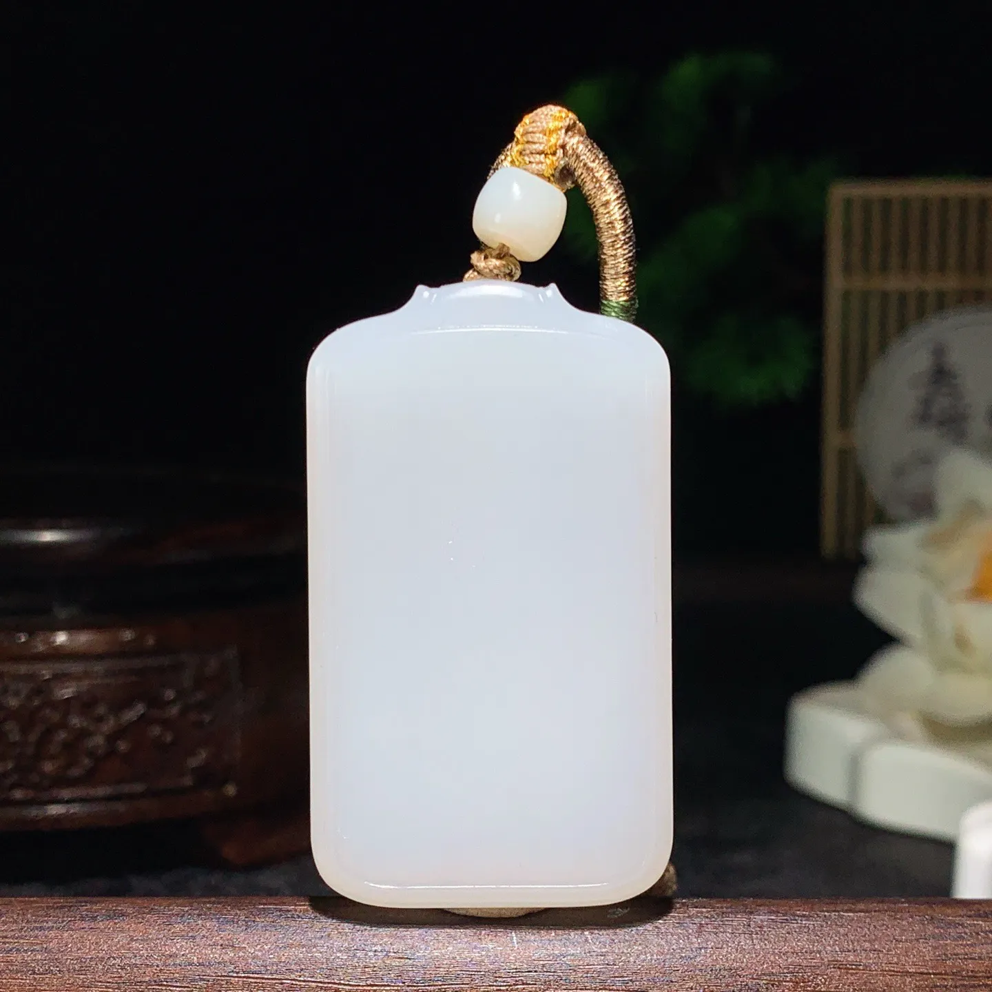 新疆和田玉白玉羊脂白平安无事牌挂件 尺寸49/29/7重29.8克。玉质细腻油润。手推出油。佩戴高端