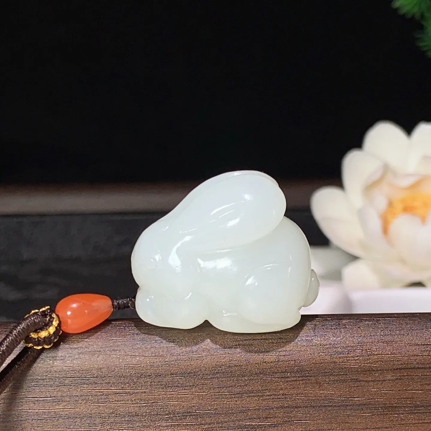 和田玉白玉前途无量兔子挂件 尺寸29/18/25重22.5克。玉质细腻油润。手推出油。佩戴高端典雅。