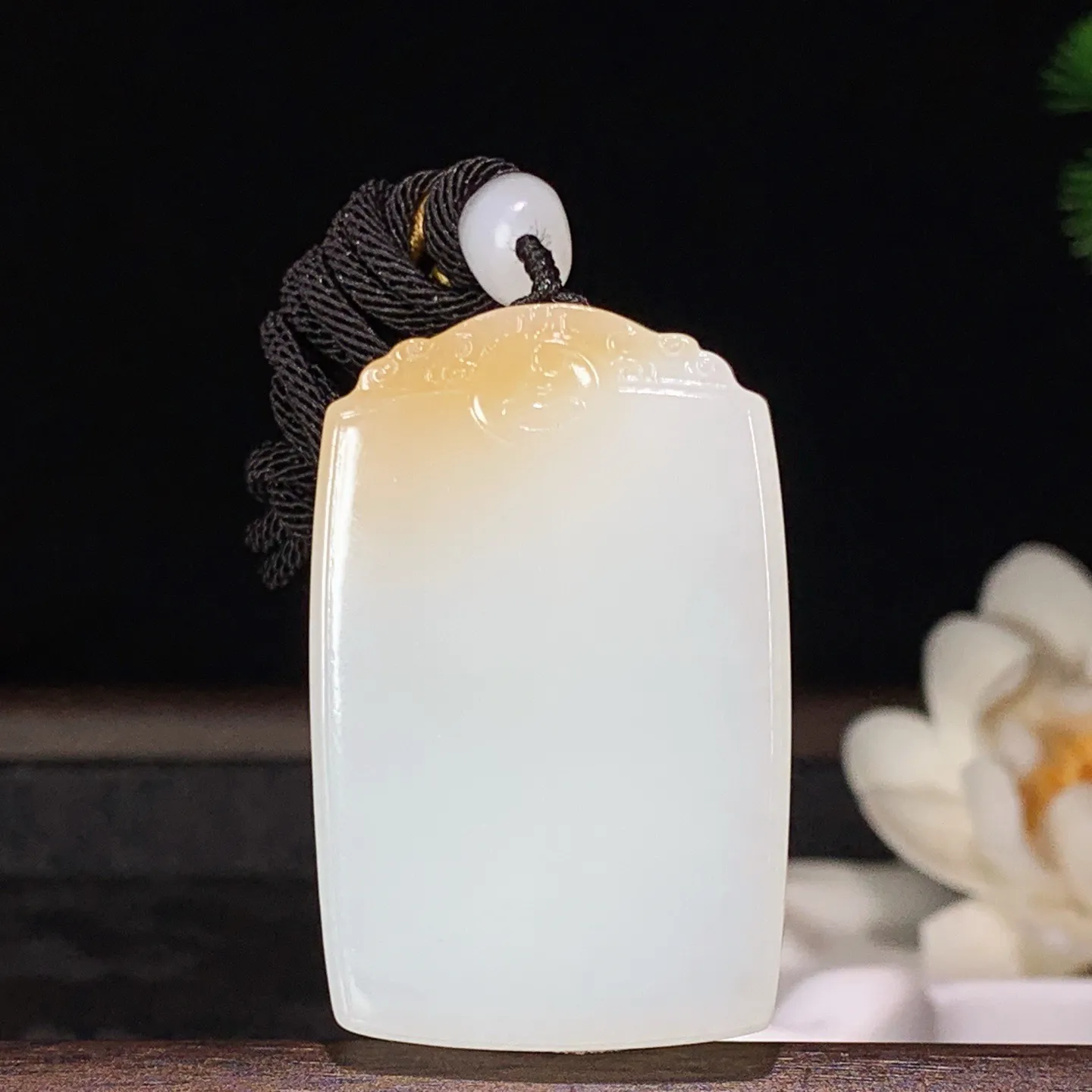 和田玉羊脂白糖料平安无事牌挂件 尺寸47/30/12重48.5克。玉质细腻油润。手推出油。佩戴高端典