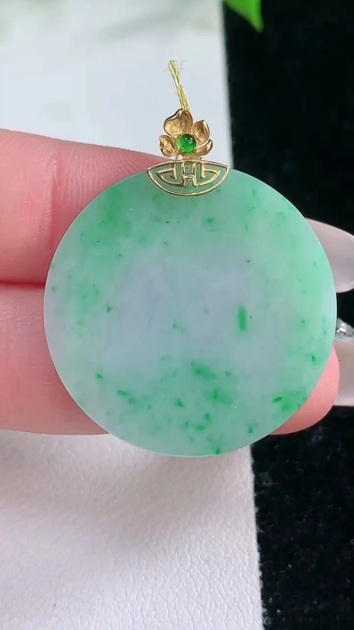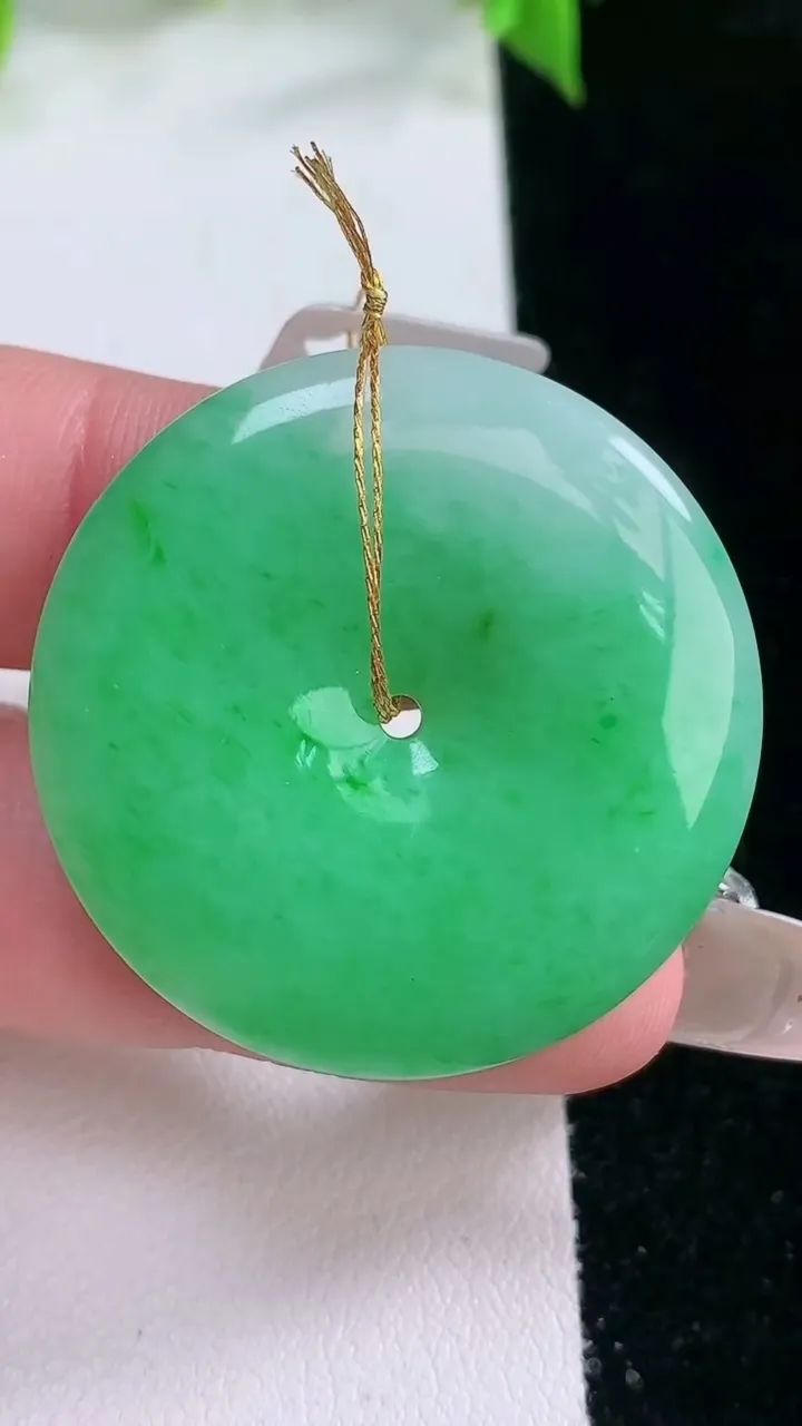 天然A货翡翠冰种飘花平安扣吊坠,尺寸33.6-5.7,重量:14.41g 2月5日