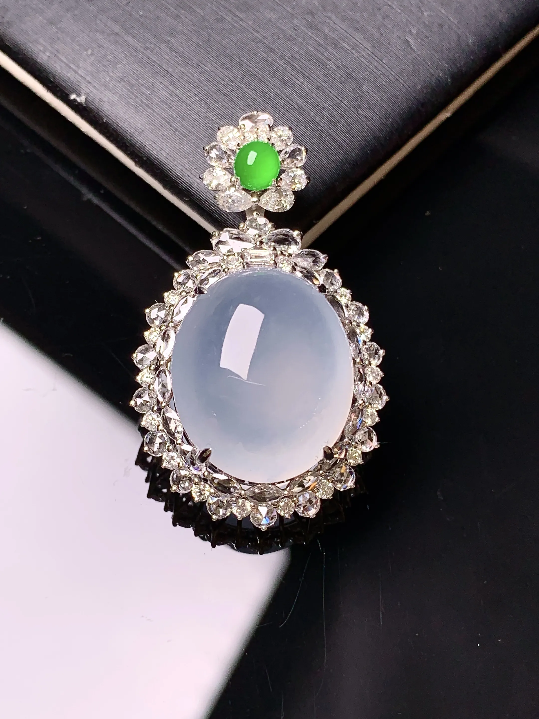18k金钻镶嵌冰种蛋面吊坠 玉质细腻 色泽艳丽清新 整体尺寸32*19.5*10.8