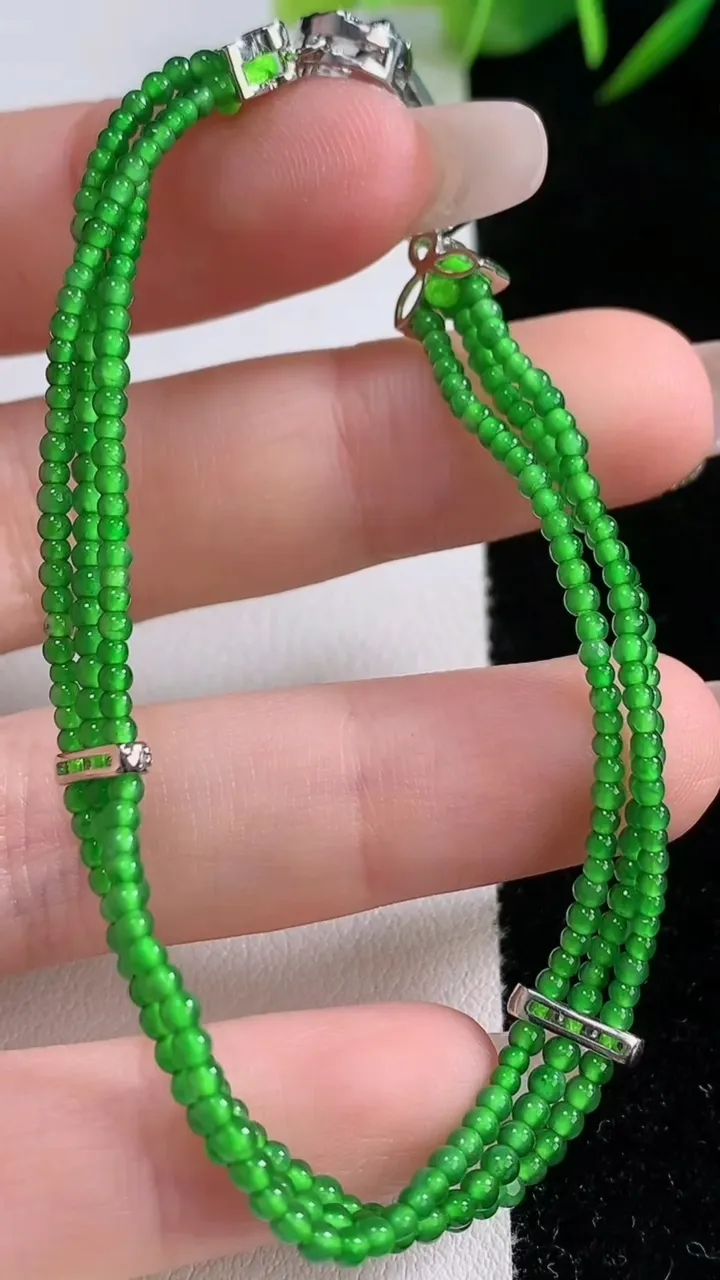 天然A货翡翠小米珠三排手串,尺寸2.3,重量:5.28g12月24日 工厂直销收藏佳品,种好水足,色