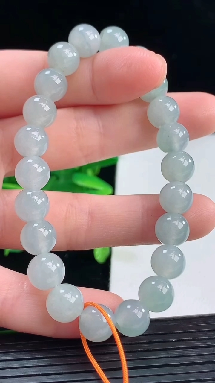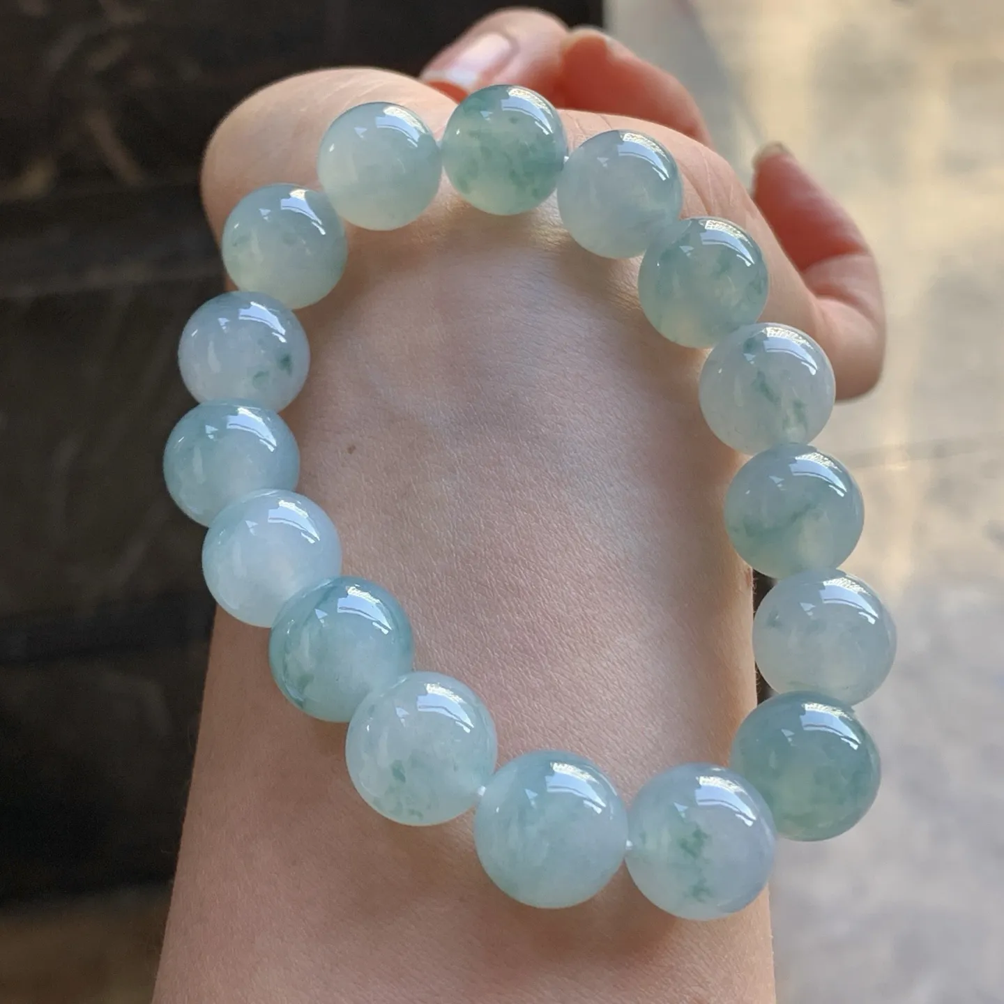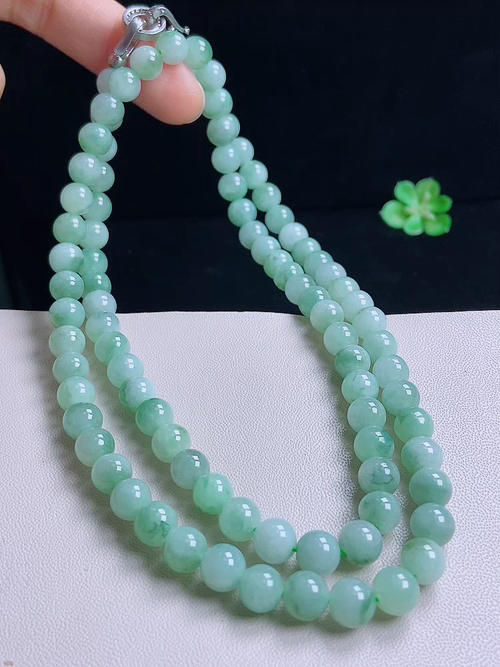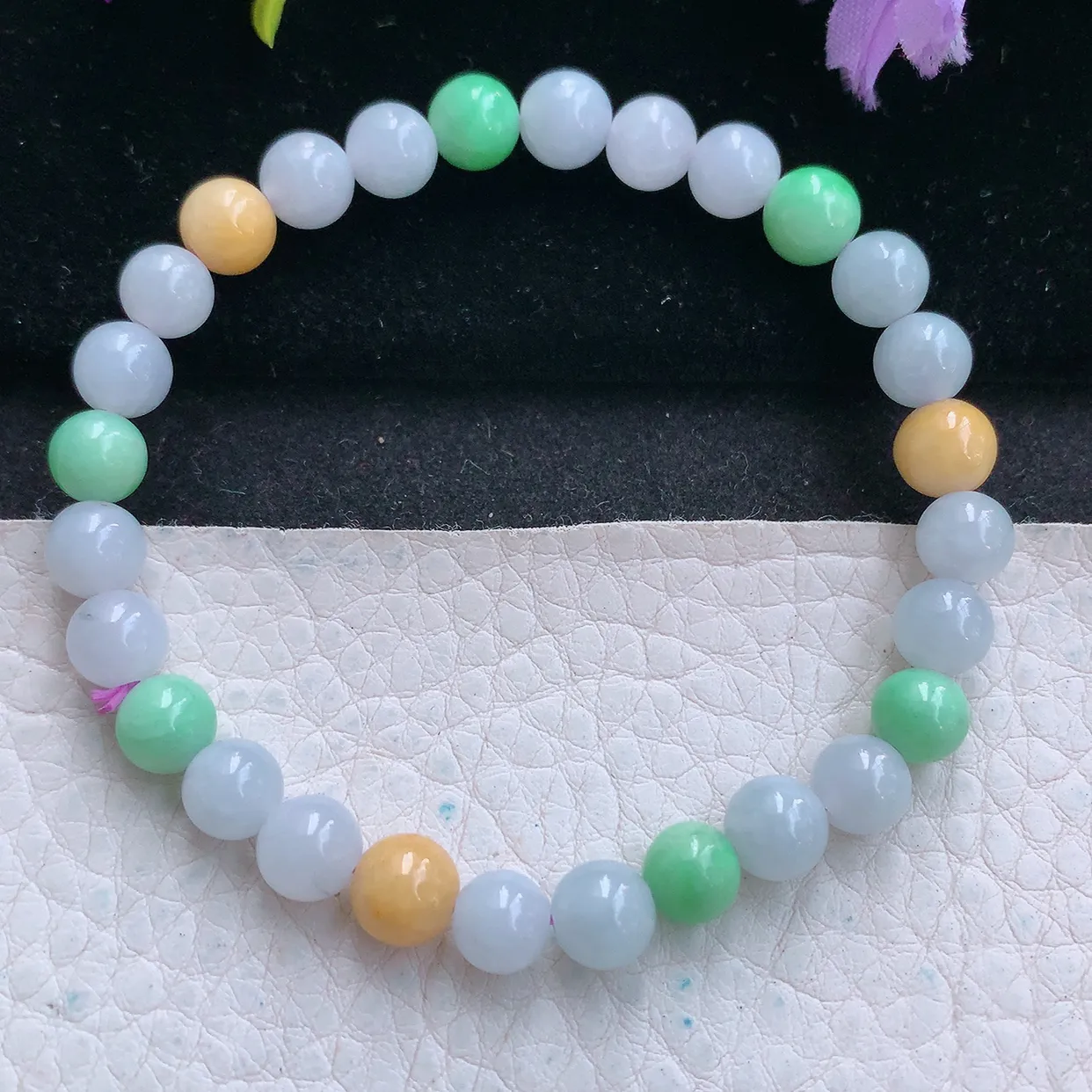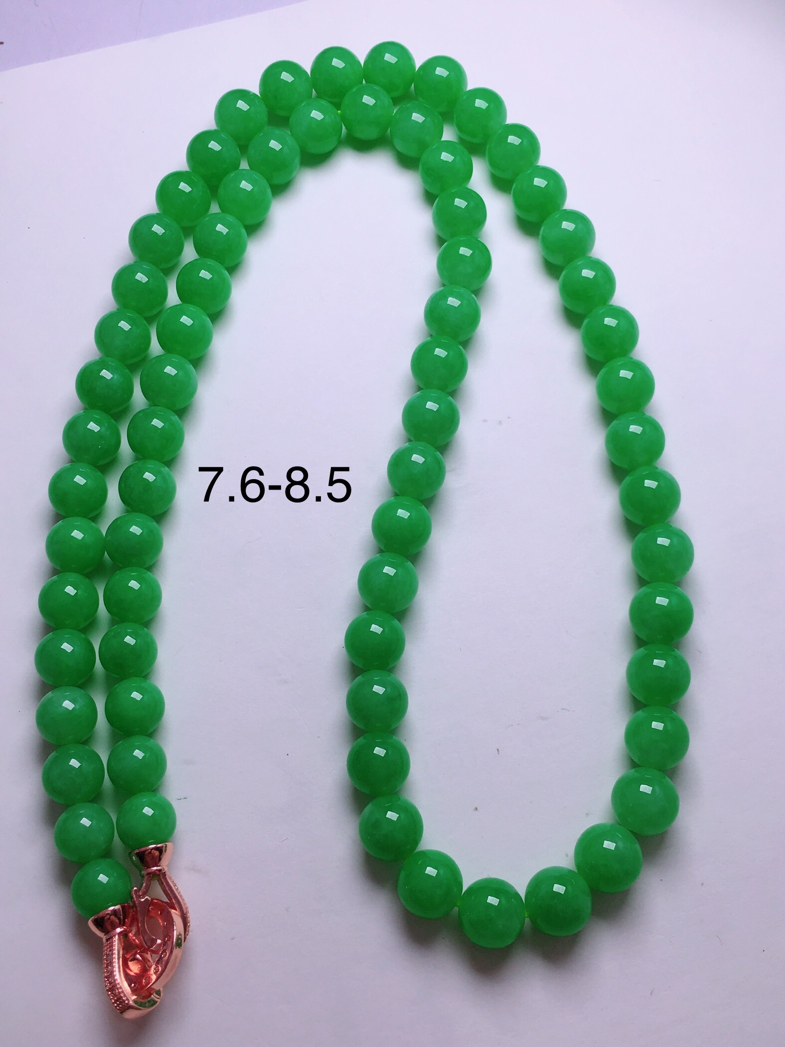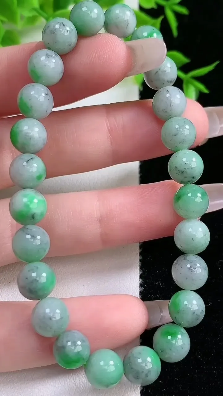 A货翡翠,冰润满绿圆珠手链,玉质细腻,色彩鲜艳,水头饱满,形体漂亮,水润精细,佩戴效果好