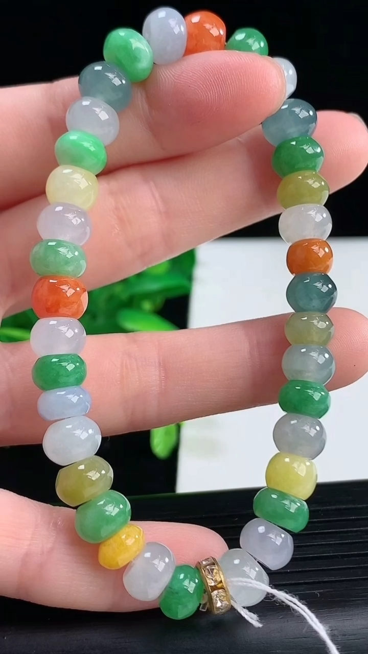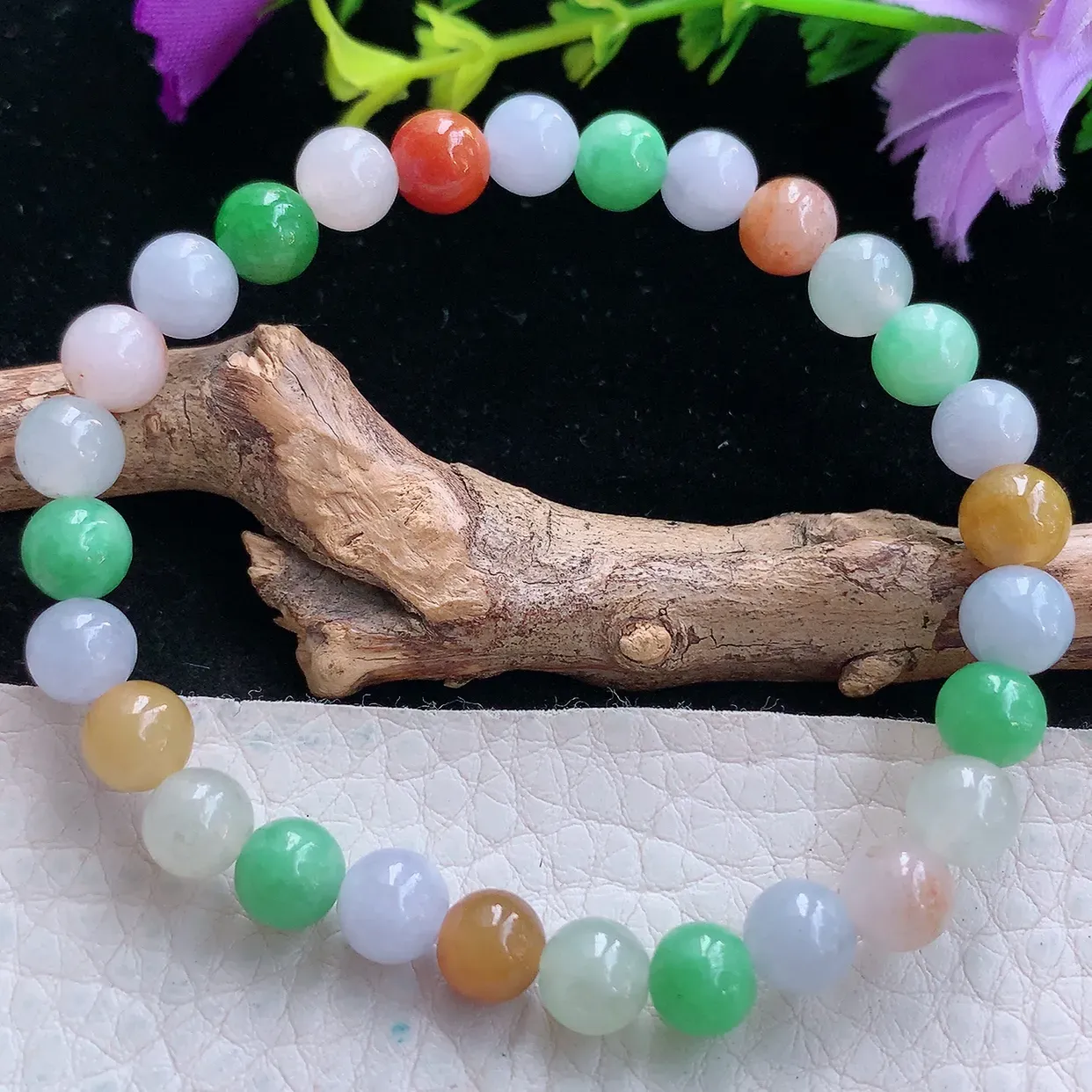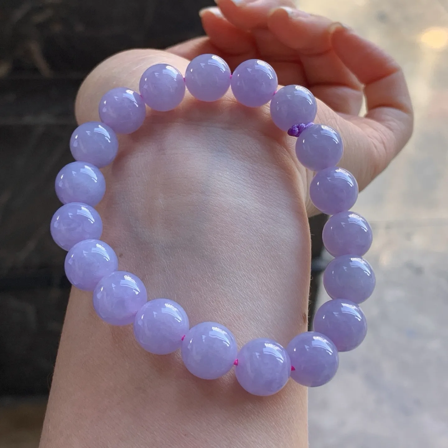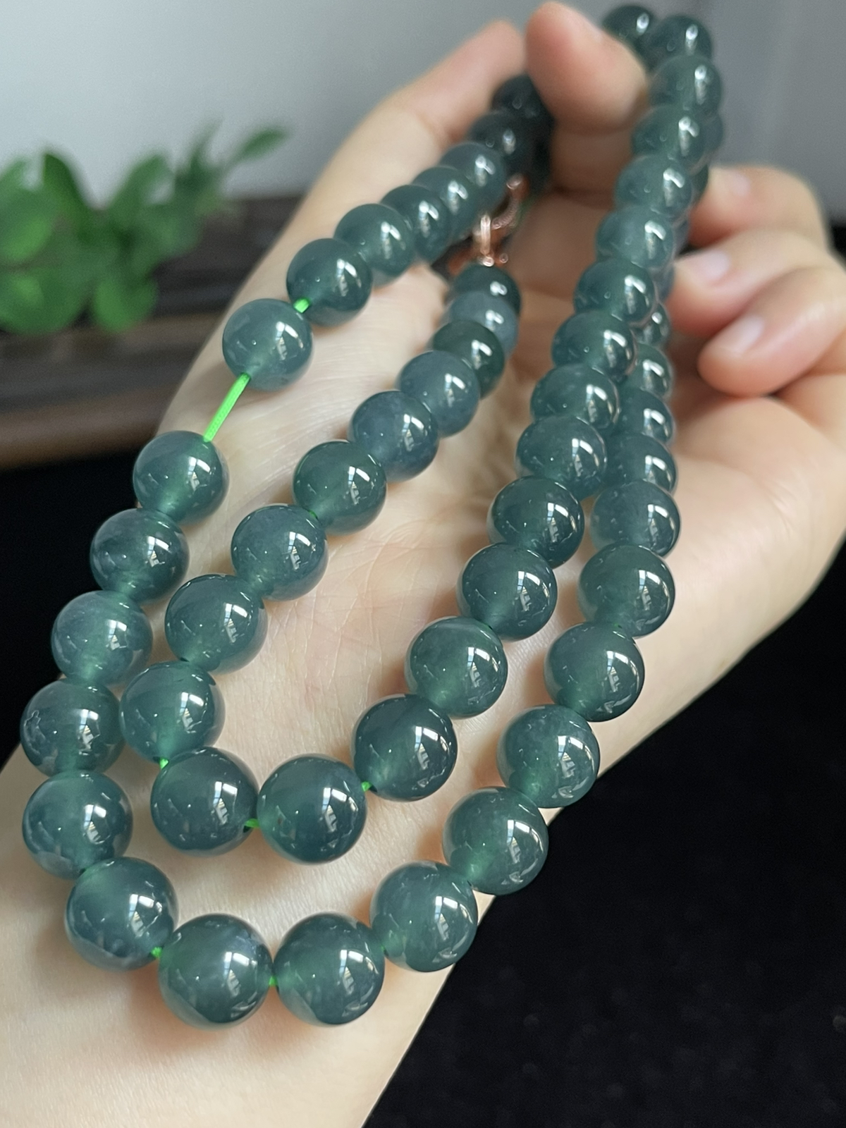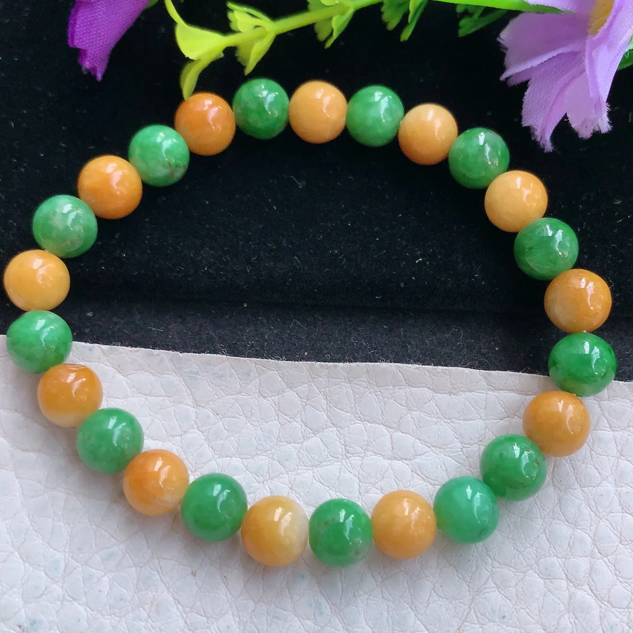 A货翡翠,冰润满绿圆珠手链,玉质细腻,色彩鲜艳,水头饱满,形体漂亮,水润精细,佩戴效果好
