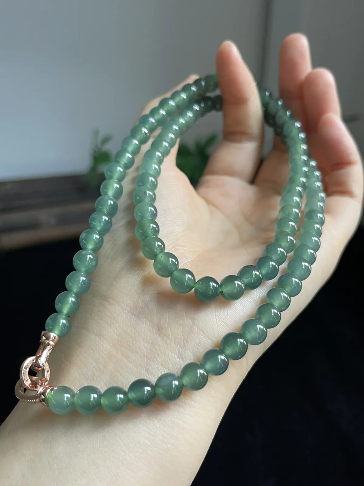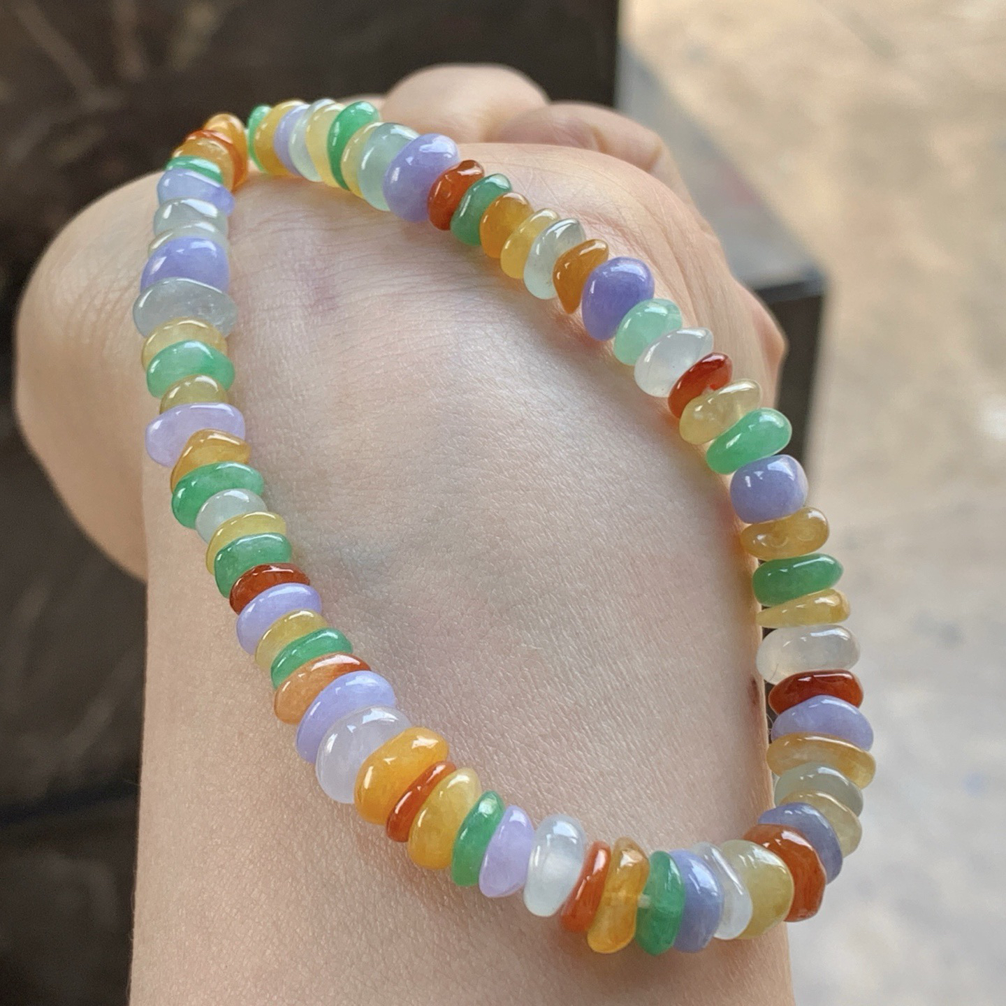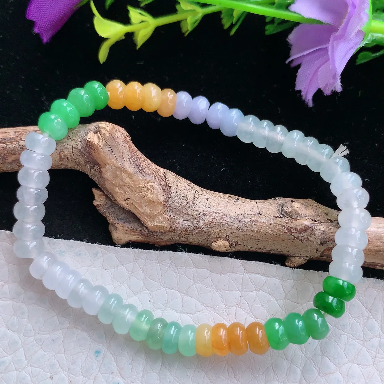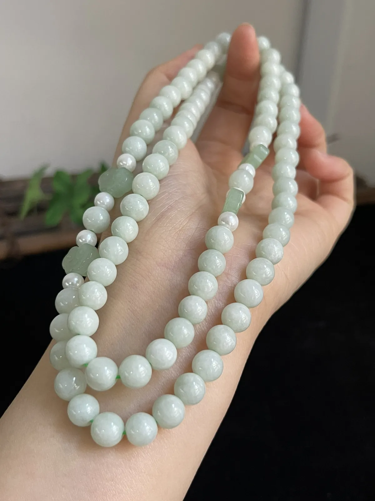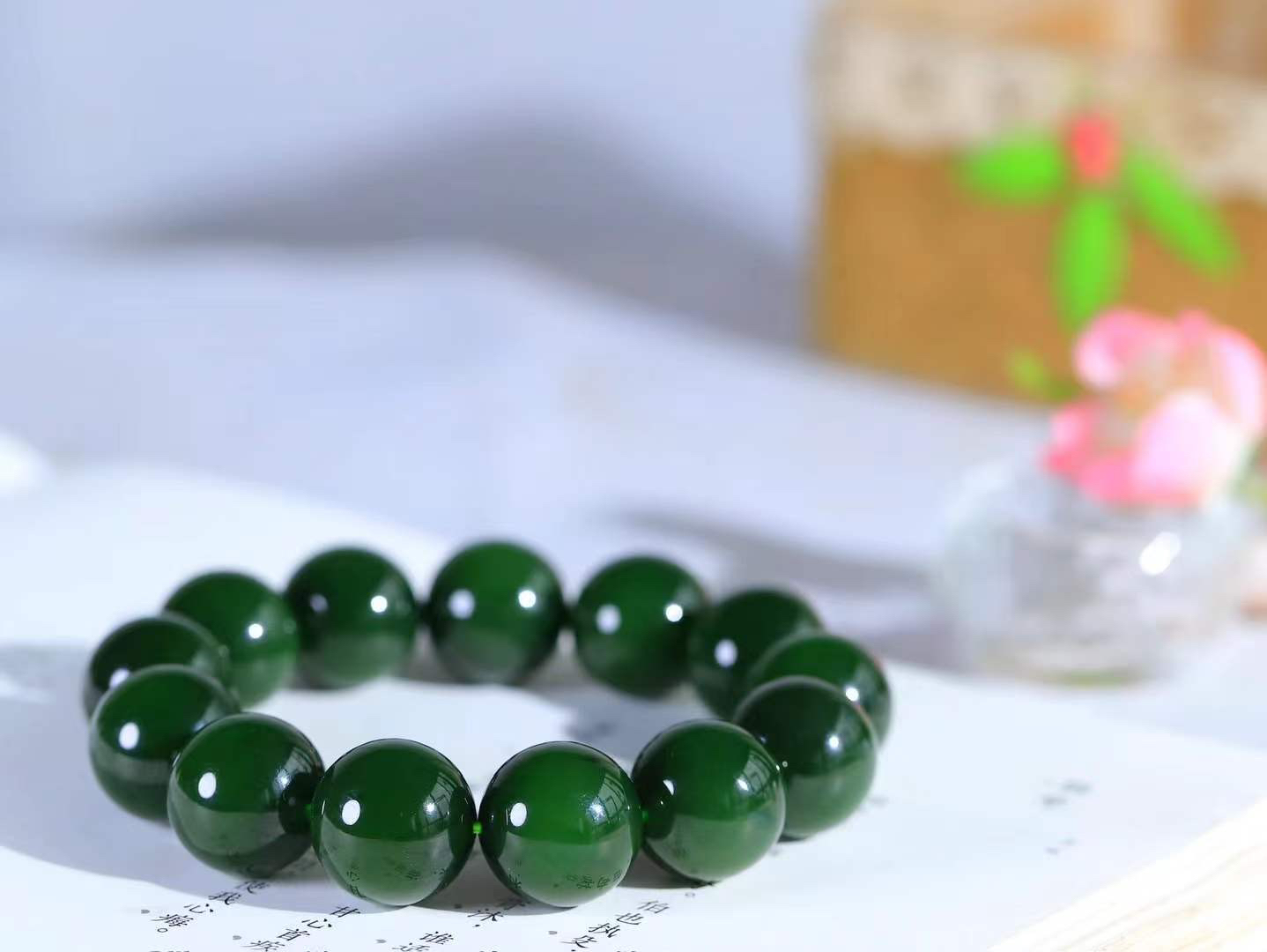 A货翡翠,冰润满绿圆珠手链,玉质细腻,色彩鲜艳,水头饱满,形体漂亮,水润精细,佩戴效果好