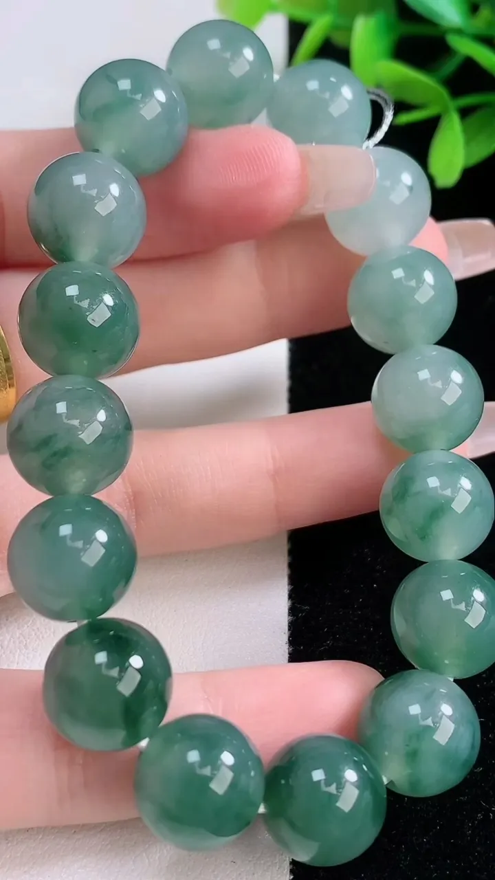天然A货翡翠种飘花圆珠手串,尺寸12.6-16颗,重量:53.84g1月5日 工厂直销收藏佳品,种好